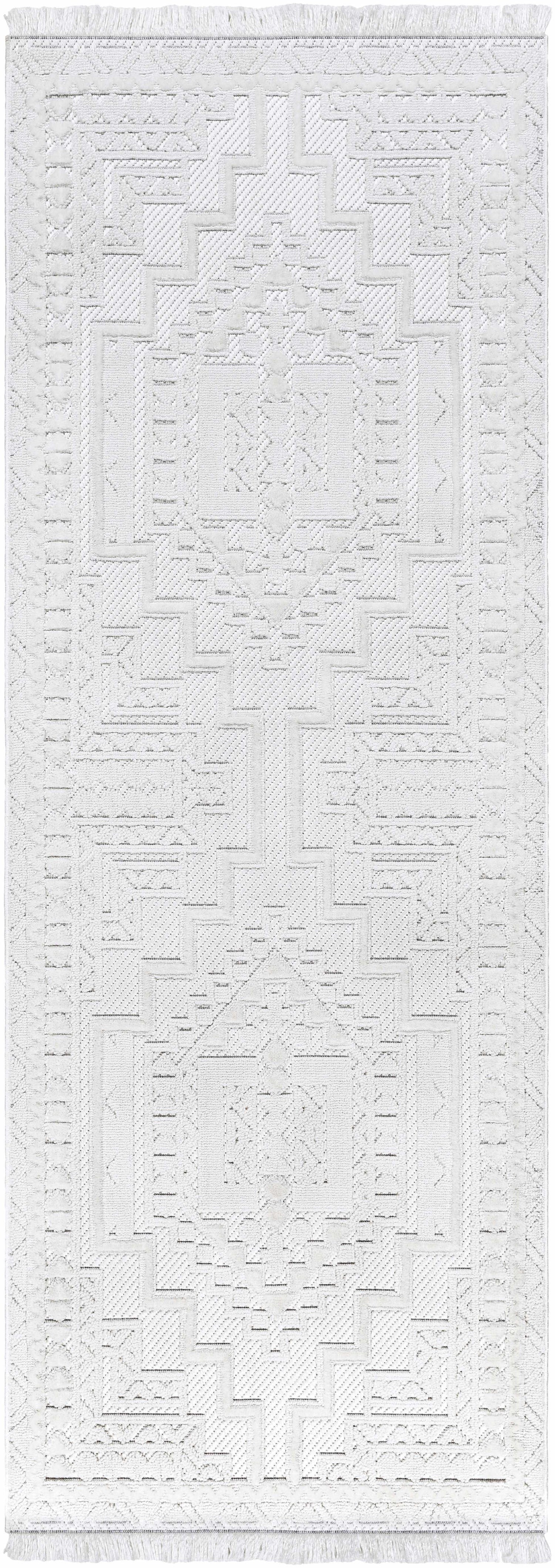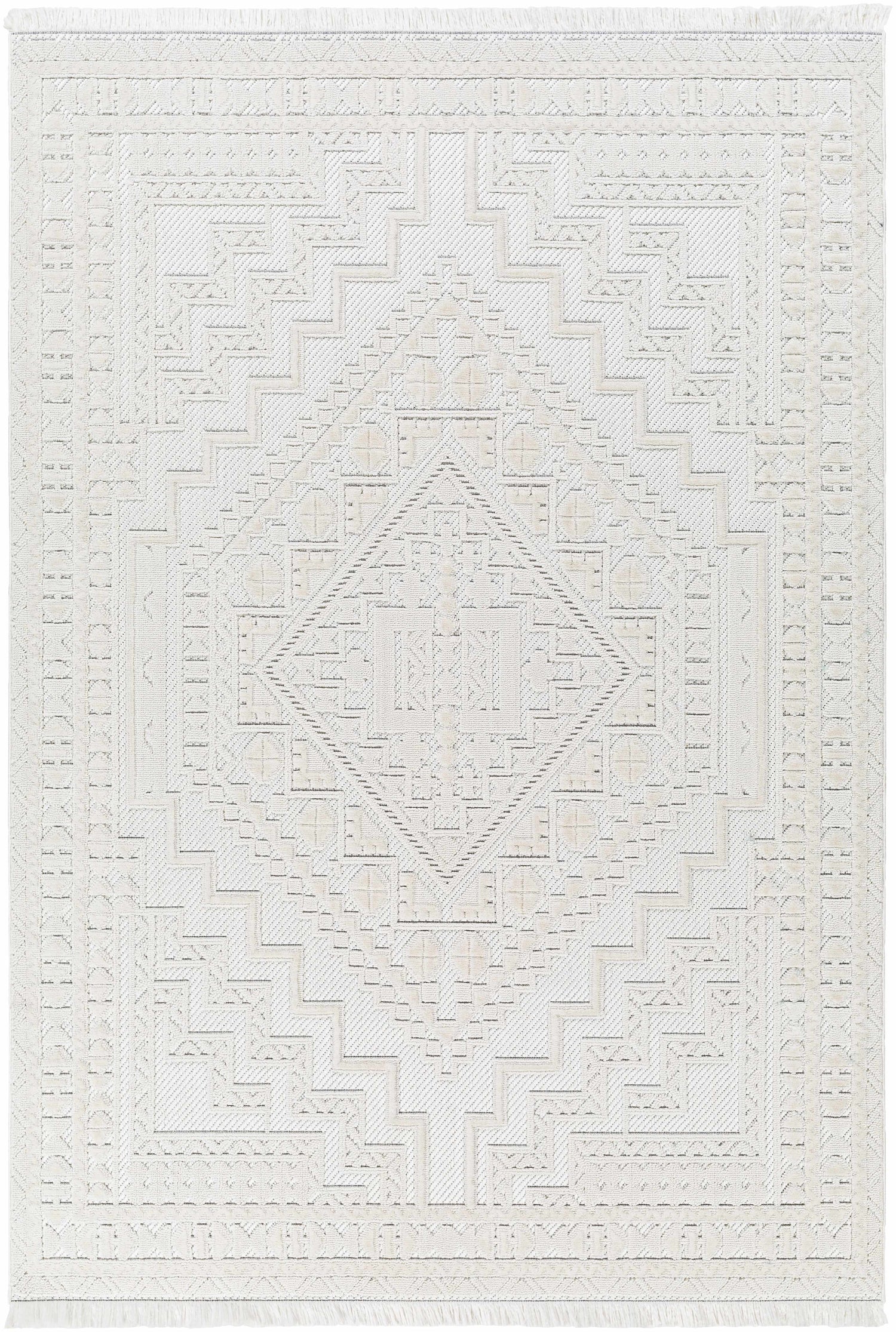 About: The Ivory Alya Textured Medallion Fringe Area Rug combines high-low textures with elegant medallion patterns, offering a luxurious feel underfoot. This rug seamlessly blends traditional and modern decor, making it a versatile addition to any room. Its crisp white color serves as a focal point, bringing a sense of cleanliness and brightness to your space. Whether placed in your living room, bedroom, or hallway, this rug adds both comfort and style. The fringed edges enhance its sophisticated look, while its plush texture ensures every step feels inviting. Perfect for creating a balanced, stylish atmosphere in any home.