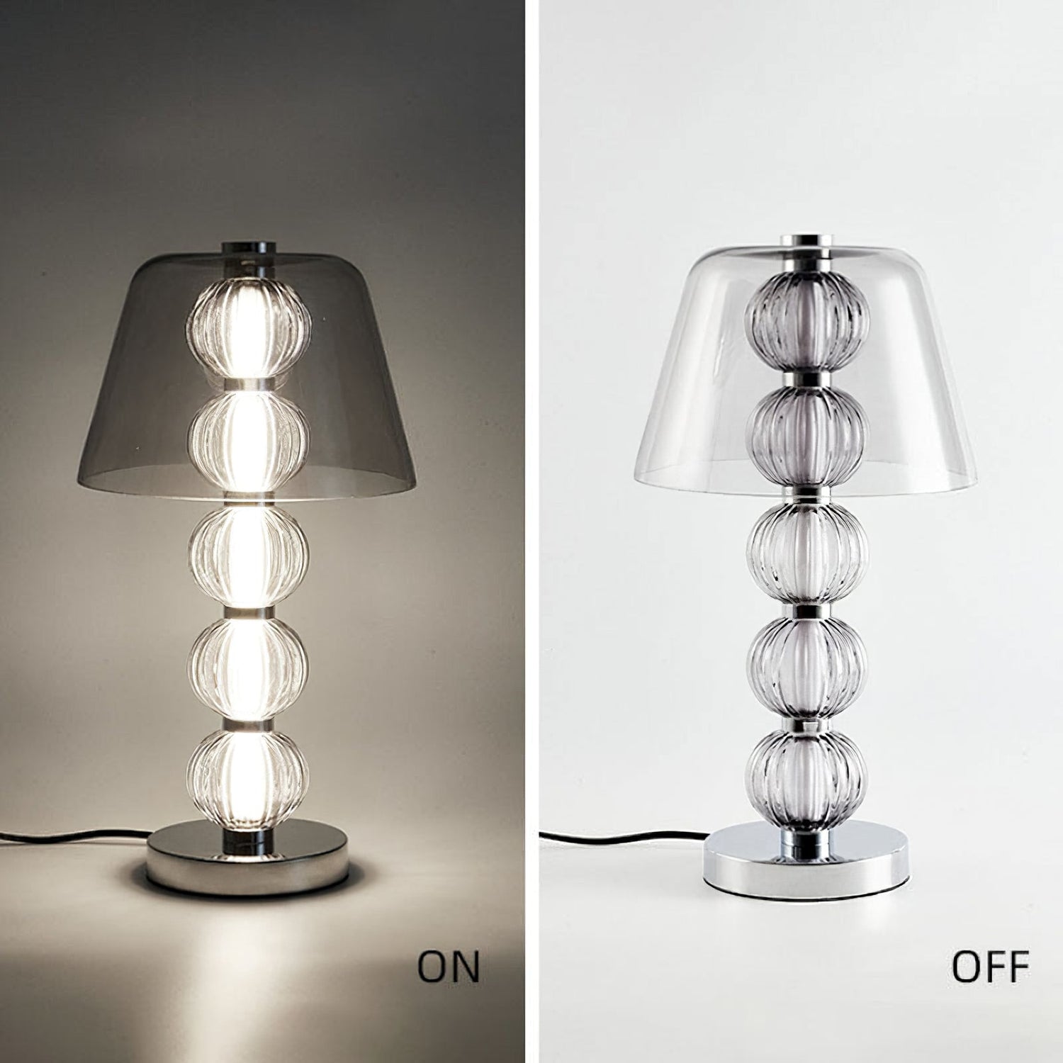 The “Amulet” Table Lamp family is inspired by the basic magic of natural objects and materials. Sacral images of African josses and the most modern lighting technologies were combined to bring up one of the most ancient intuitive senses of domestic space enchantment that people experience since the pre-historic age. Handcrafted glass beads are strung on the chain base of modernly designed acrylic and LED elements to keep the soul light up in a modern living space.