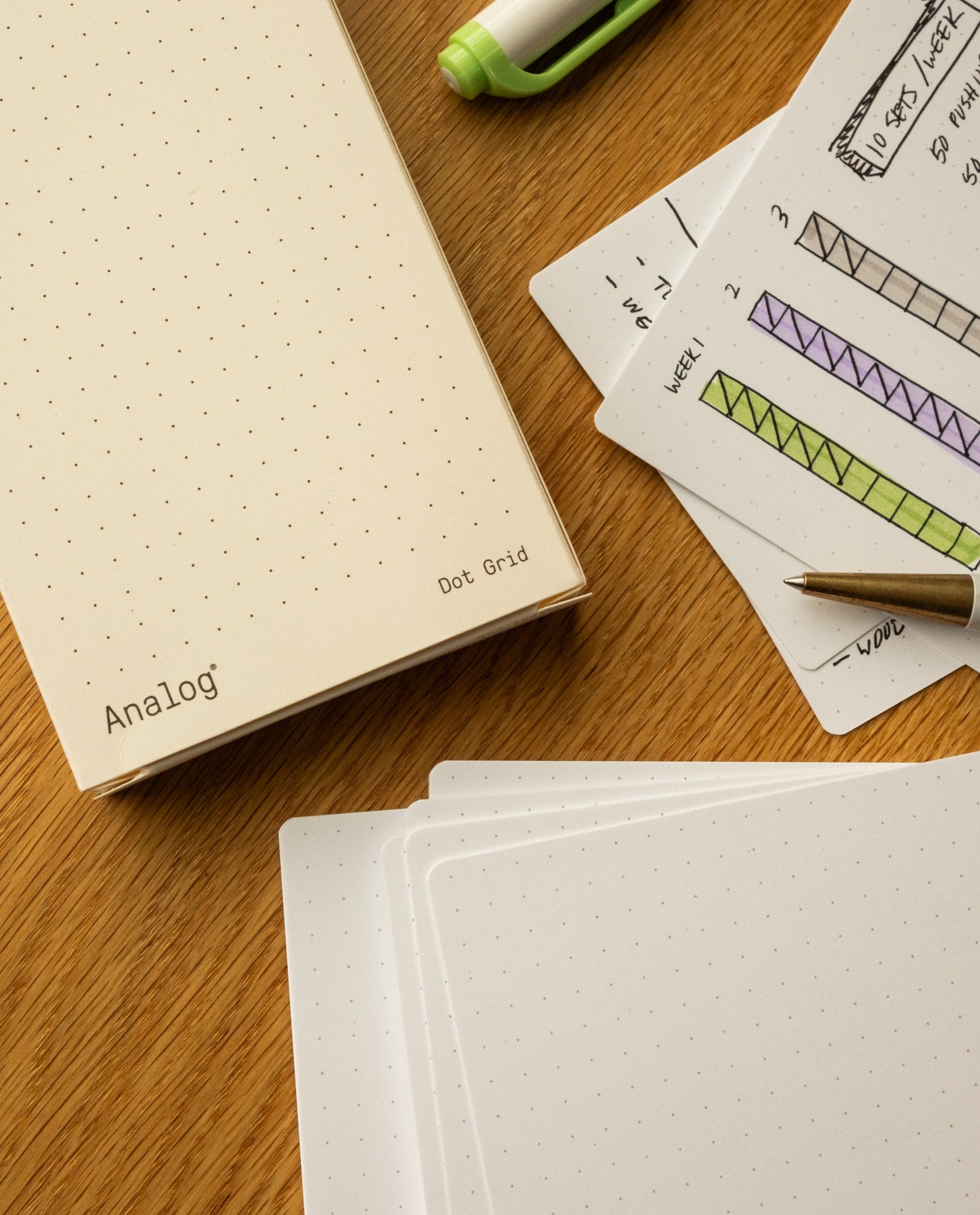 A pack of 50 Analog Dot Grid Cards. Perfect for sketching ideas and taking notes.