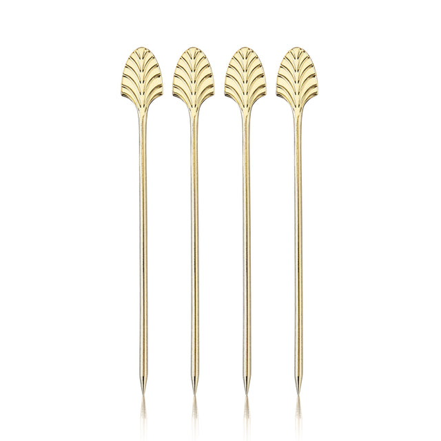 Secure garnishes with style, and add an Art Deco twist to your next cocktail. This set of gold-plated picks are made for the socially inclined.