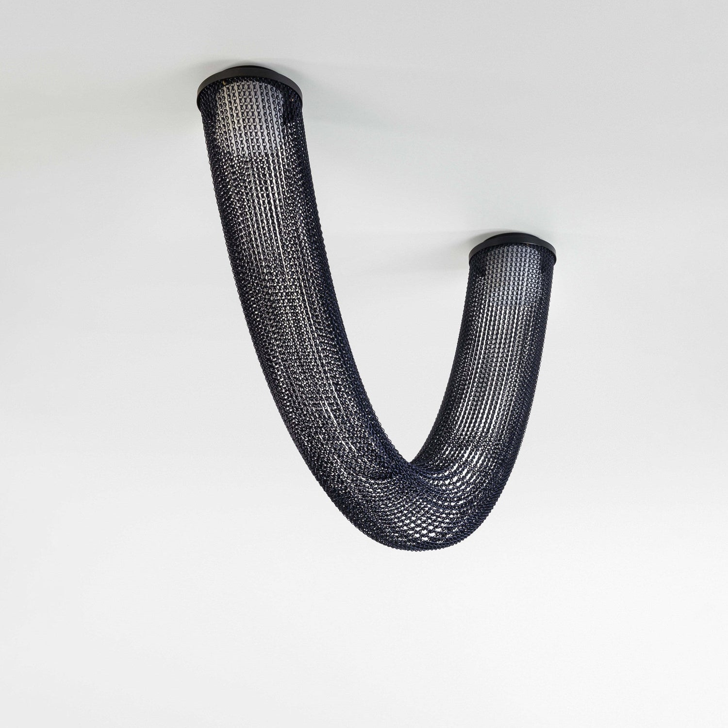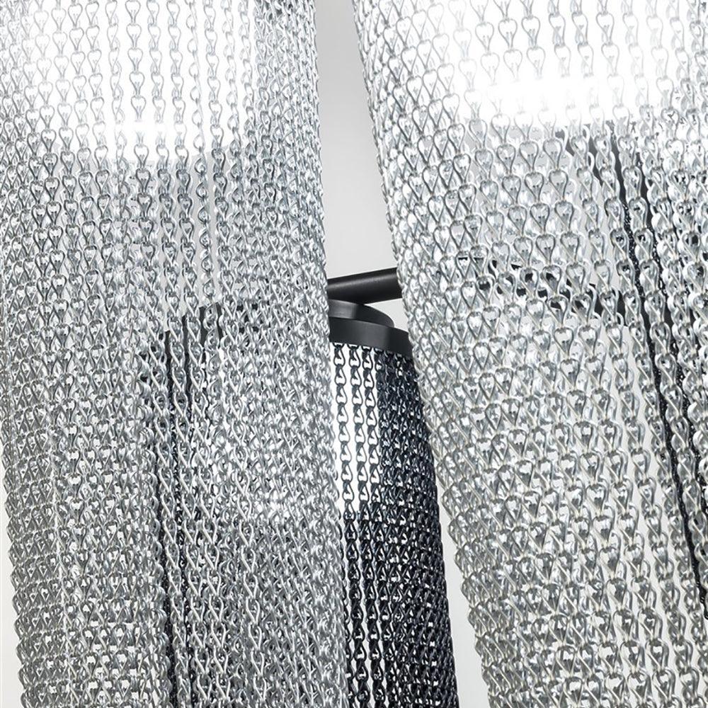 The design of the Aura Ceiling Lamp features an innovative link strip design, enveloping the light source and producing a three-dimensional effect that gives off a delicate halo. Made from lacquered metal, the lamp also includes handcrafted SCHOTT borosilicate glass diffusers, providing a matte and opaque finish.