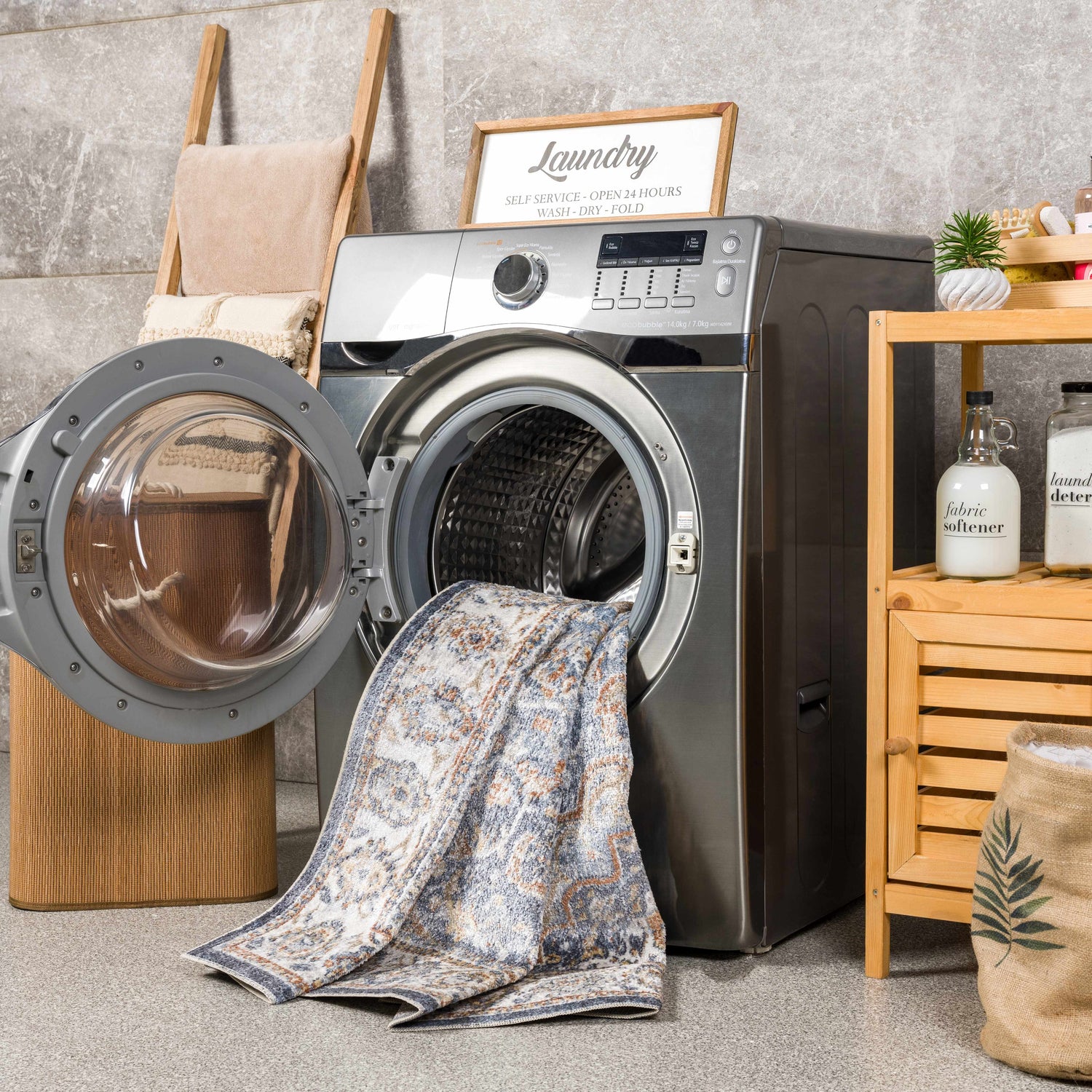About: This stunning rug is sure to take your decor to the next level. Featuring beautiful Oriental motifs with a medallion shape in a stunning mix of blue and beige, this gorgeous creation will be the perfect addition to any living space. Constructed with machine woven 100% polyester fibers in a low pile height, it is both durable and cozy. Plus, this treasure is machine washable for easy cleaning so you can keep looking great for years to come.