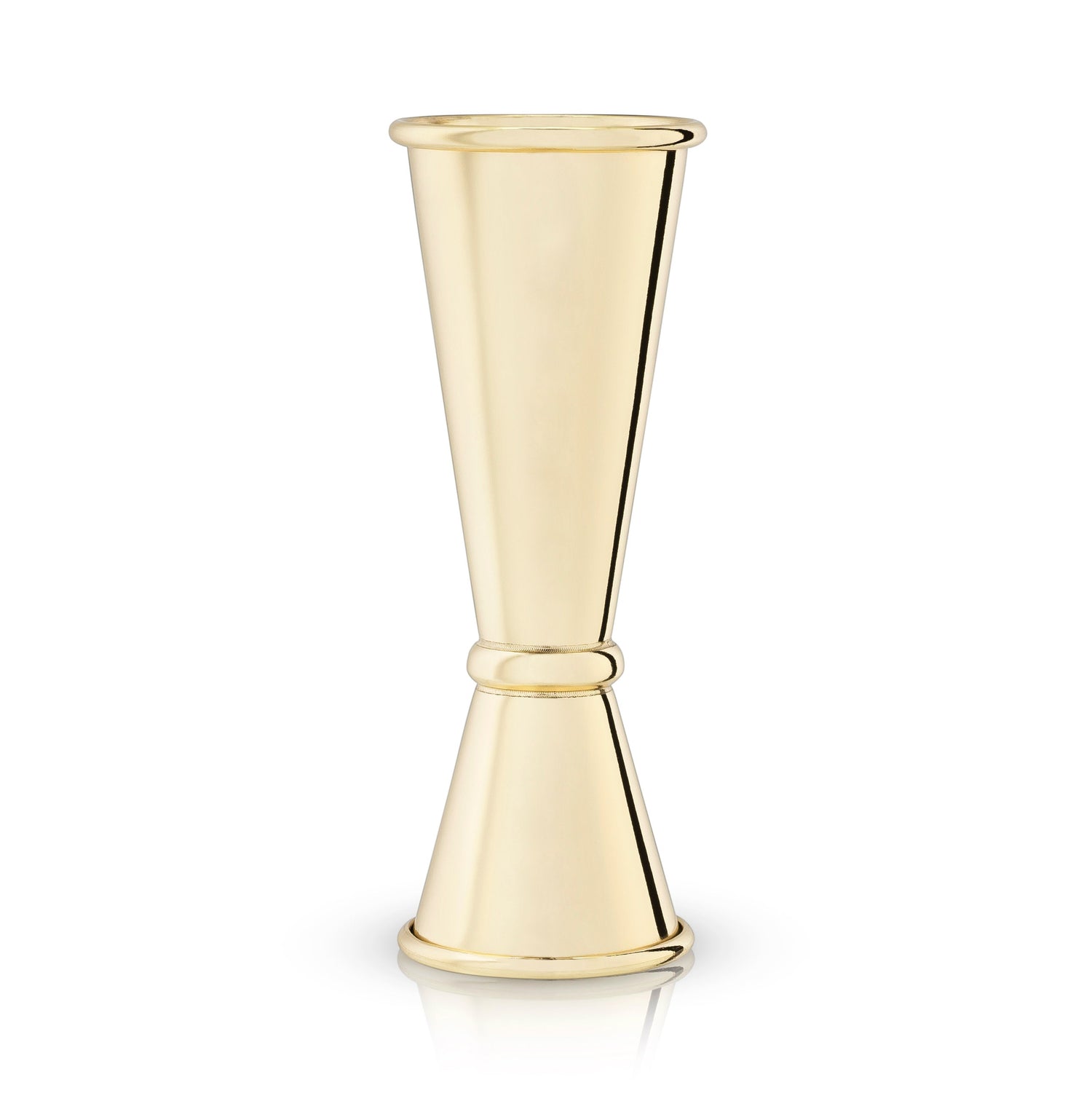 Cast in lustrous gold with a band that separates its one- and two-ounce sections, the interior of each side of our professional Japanese-style double jigger is scored with pinpoint mixology measurements (1.5, 0.75 and 0.5 ounces).