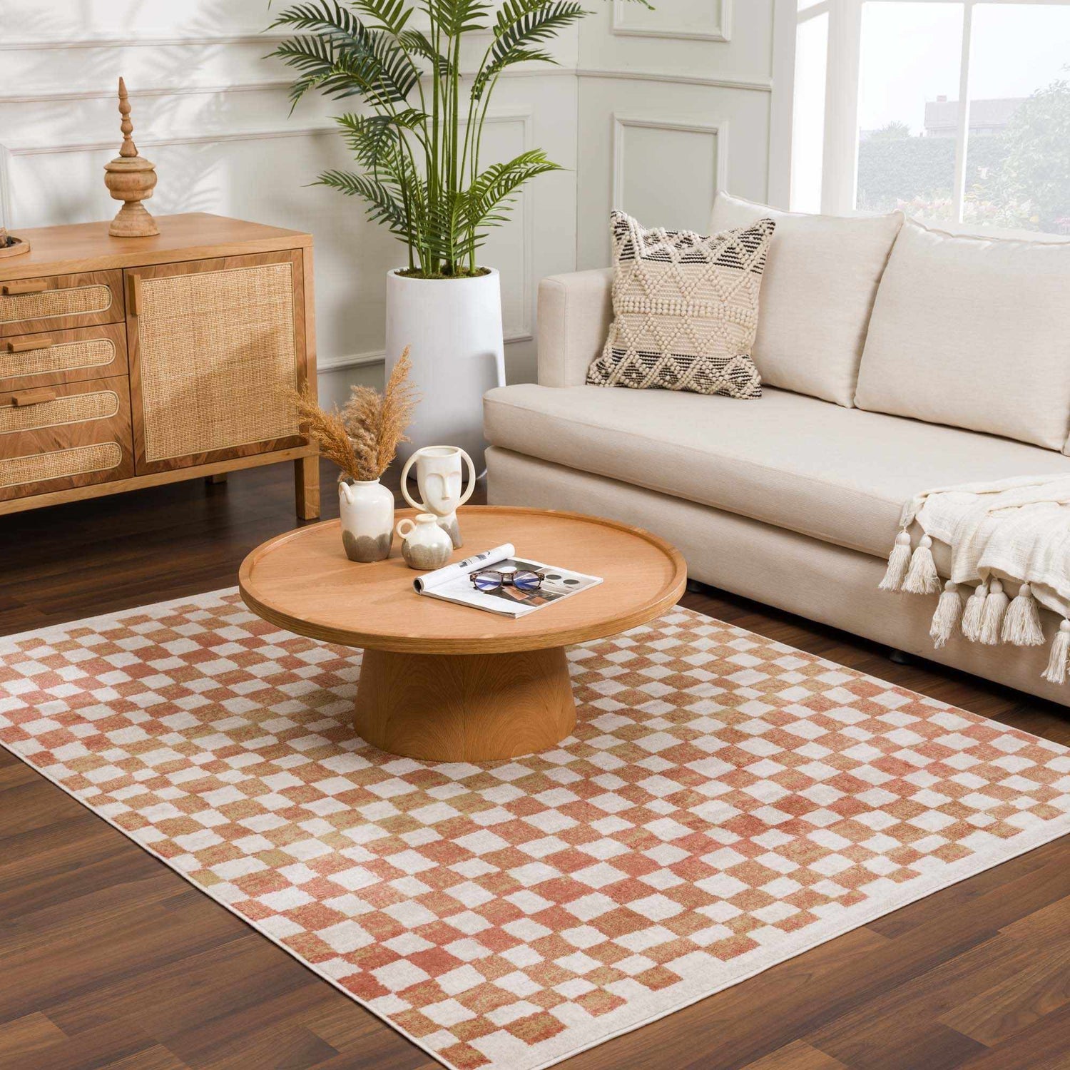 | About: The Benjy Cream Rust Checkered Area Rug features a distressed, uneven checkered pattern in warm salmon and rust tones. With its boho-inspired design and plush texture, it offers excellent underfoot comfort while being ideal for high-traffic areas. Add a touch of rustic charm and durability to your living spaces with this versatile rug. |
