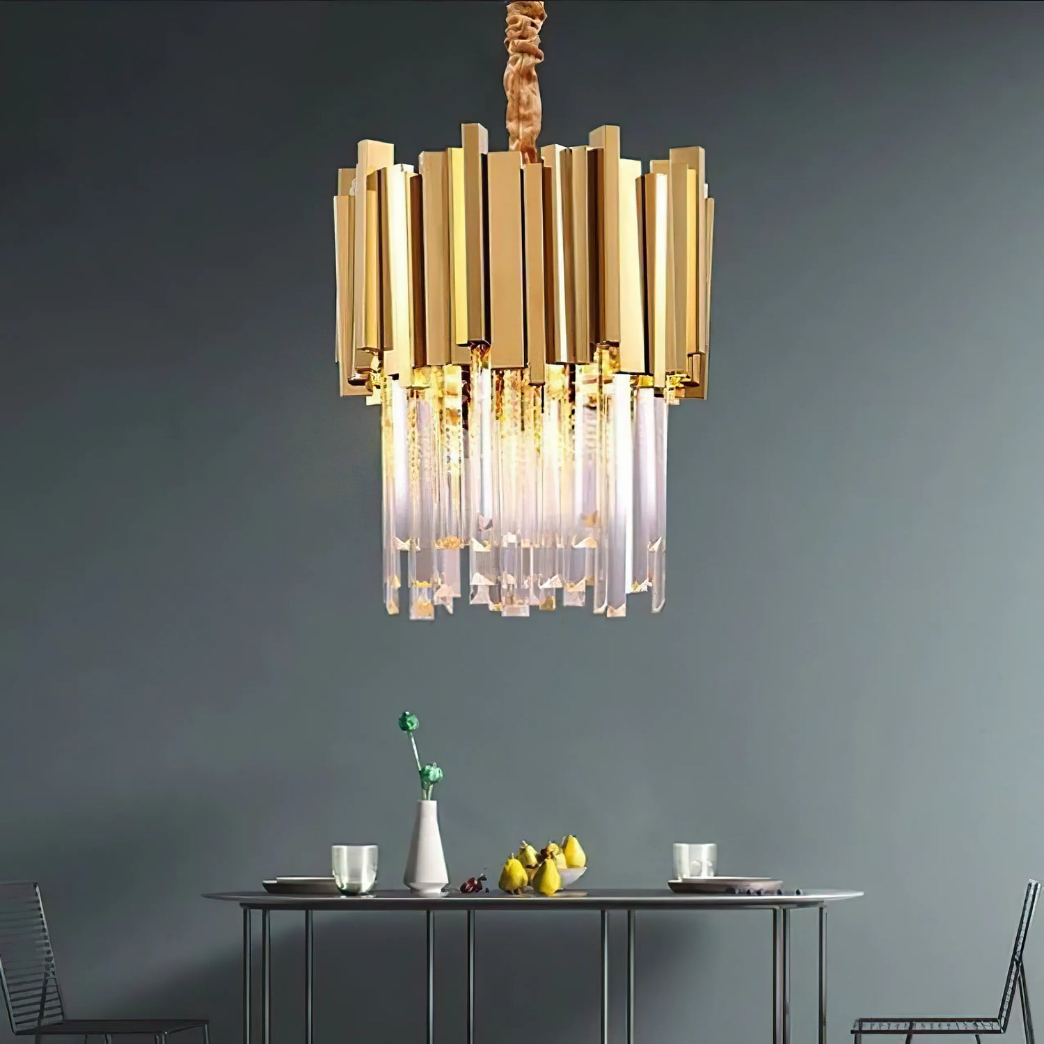 Inspired by a contemporary vision, the Bourbons Crystal Pendant redefines elegance as glass volumes delicately float within sleek metal frames. Reflecting the grace of crystal-and-steel architectural elements, this collection embodies sophisticated linear designs, refined proportions, and a captivating, weightless charm.Details
