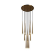Brass Spinal Tube Combination Chandelier | Inspired by French minimalist lighting of the 1960s, Jonathan Browning's elegant design features a cluster of solid brass forms suspended from slender black cords.