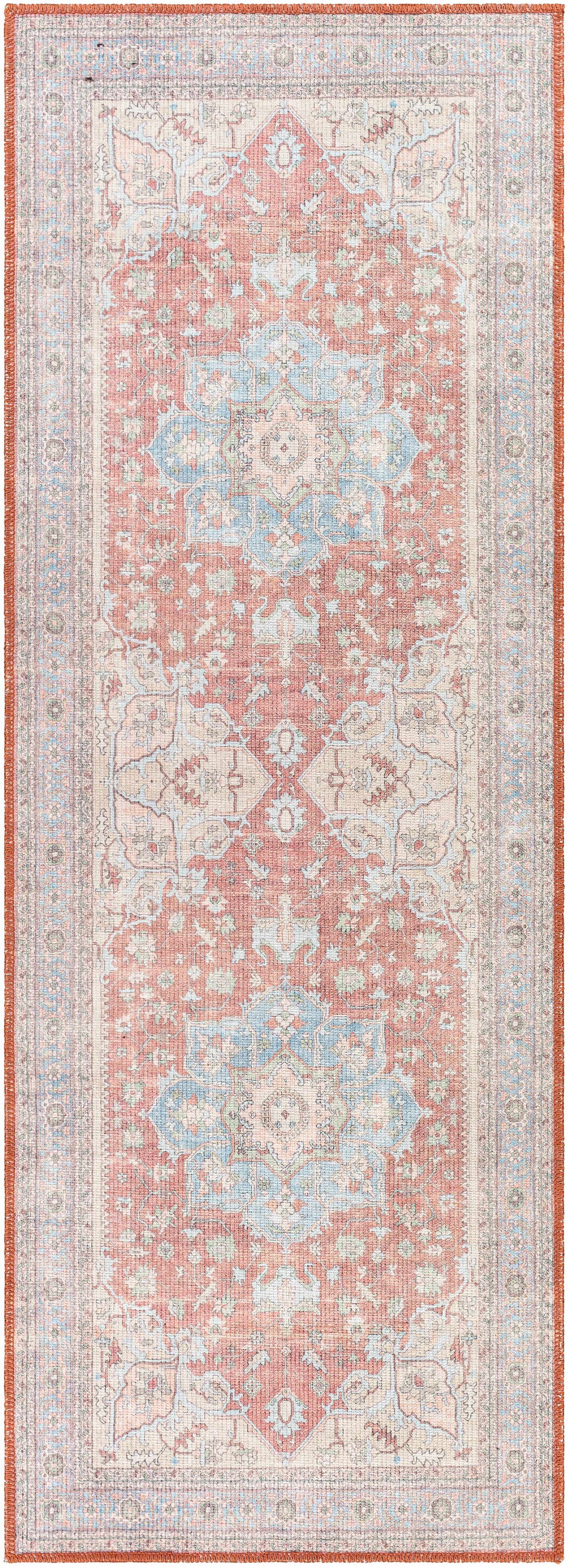 About: The Brown Bagamanoc Medallion Washable Area Rug showcases a traditional design inspired by Persian and Turkish artistry. Featuring a striking medallion pattern with dominant blue and red tones, this rug brings timeless elegance and character to your home. Perfect for adding a classic touch to any space, it’s both beautiful and practical with its washable durability.