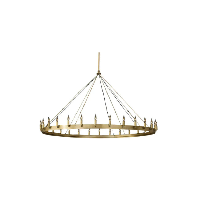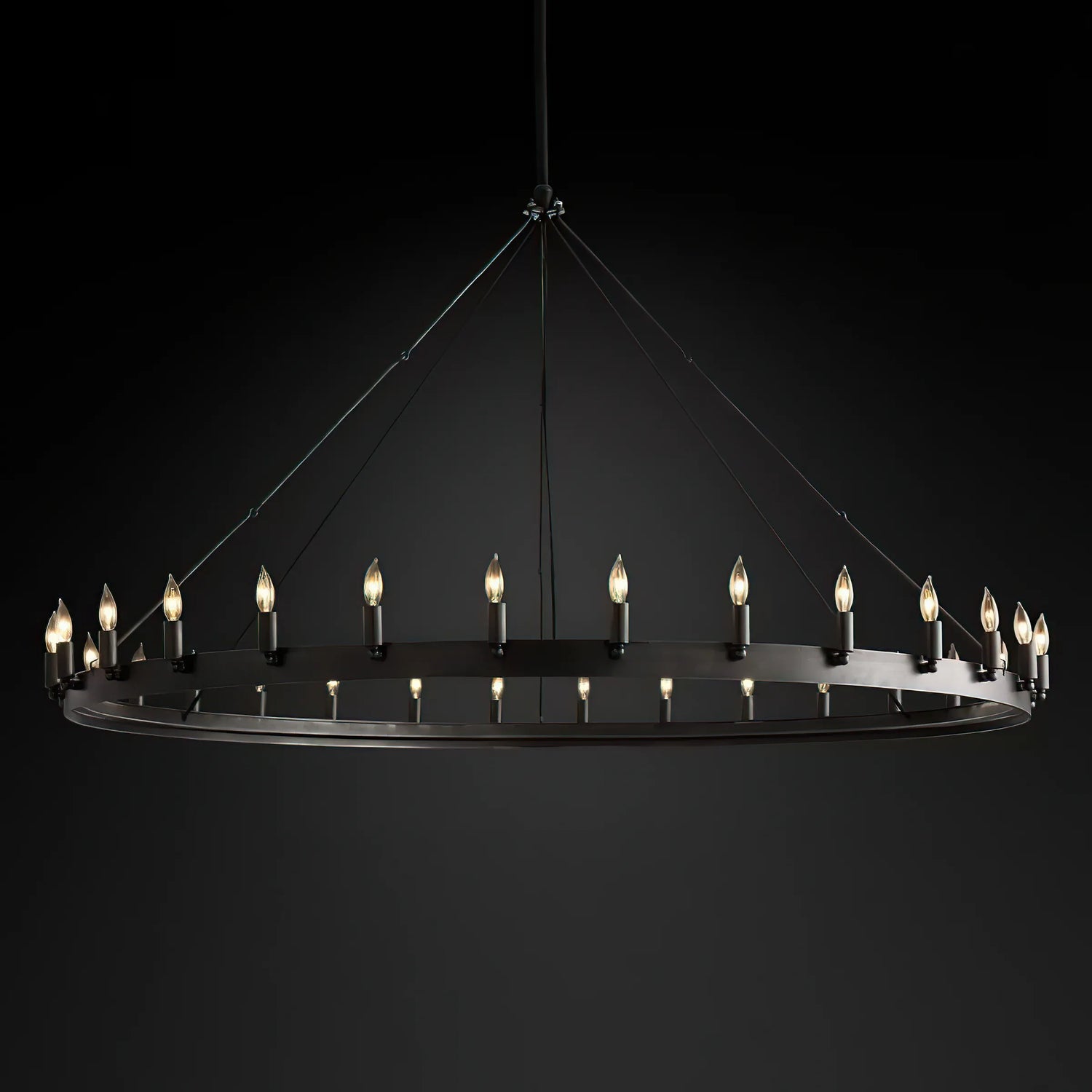 Drawing from early 20th-century industrial aesthetics, the Camino Vintage Candelabra Round Chandelier 63" embodies rustic charm, blending simple lines with grand proportions. Crafted meticulously from durable angle iron, it exudes an enduring allure reminiscent of a nostalgic era.