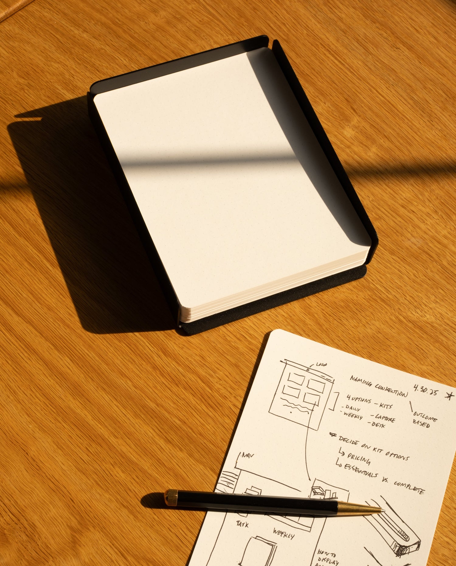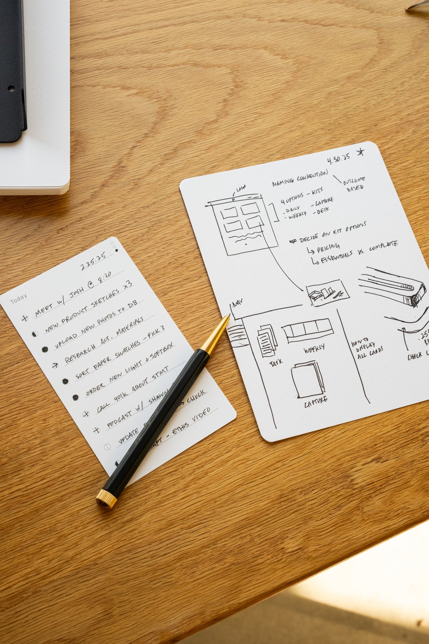 Say goodbye to scattered notes and lost ideas. Capture Cards give you a dedicated place for jotting down ideas, notes, sketches, and everything in between. The sleek steel tray keeps blank cards ready, while a clever flap lets you slide completed ones underneath for easy storage.