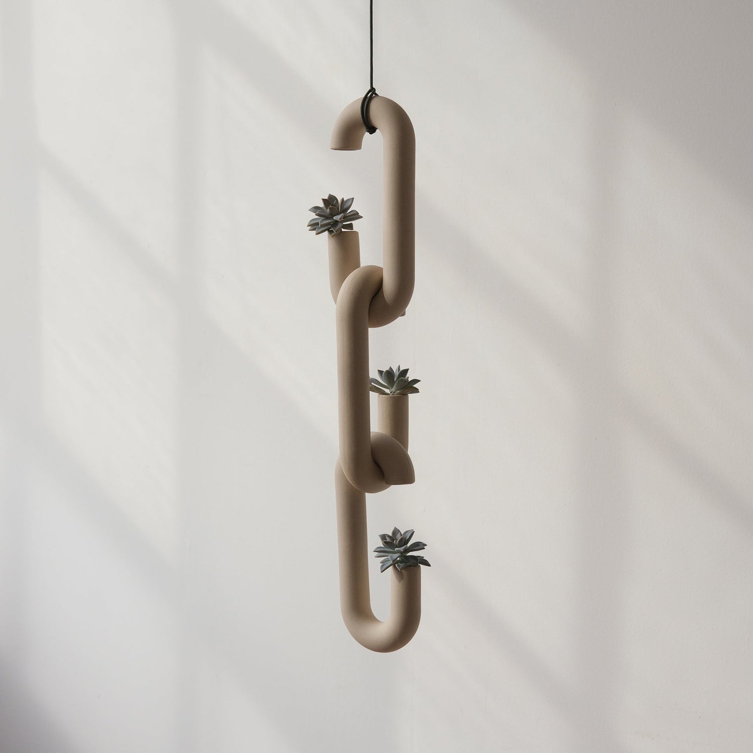 Our Chain Vase offers a creative twist on the traditional hanging bud vase. Whether you're propagating plants or seeking a playful way to display a floral arrangement, this distinctive piece will add charm to any space. Handmade from stoneware in our Milwaukee ceramics studio.
