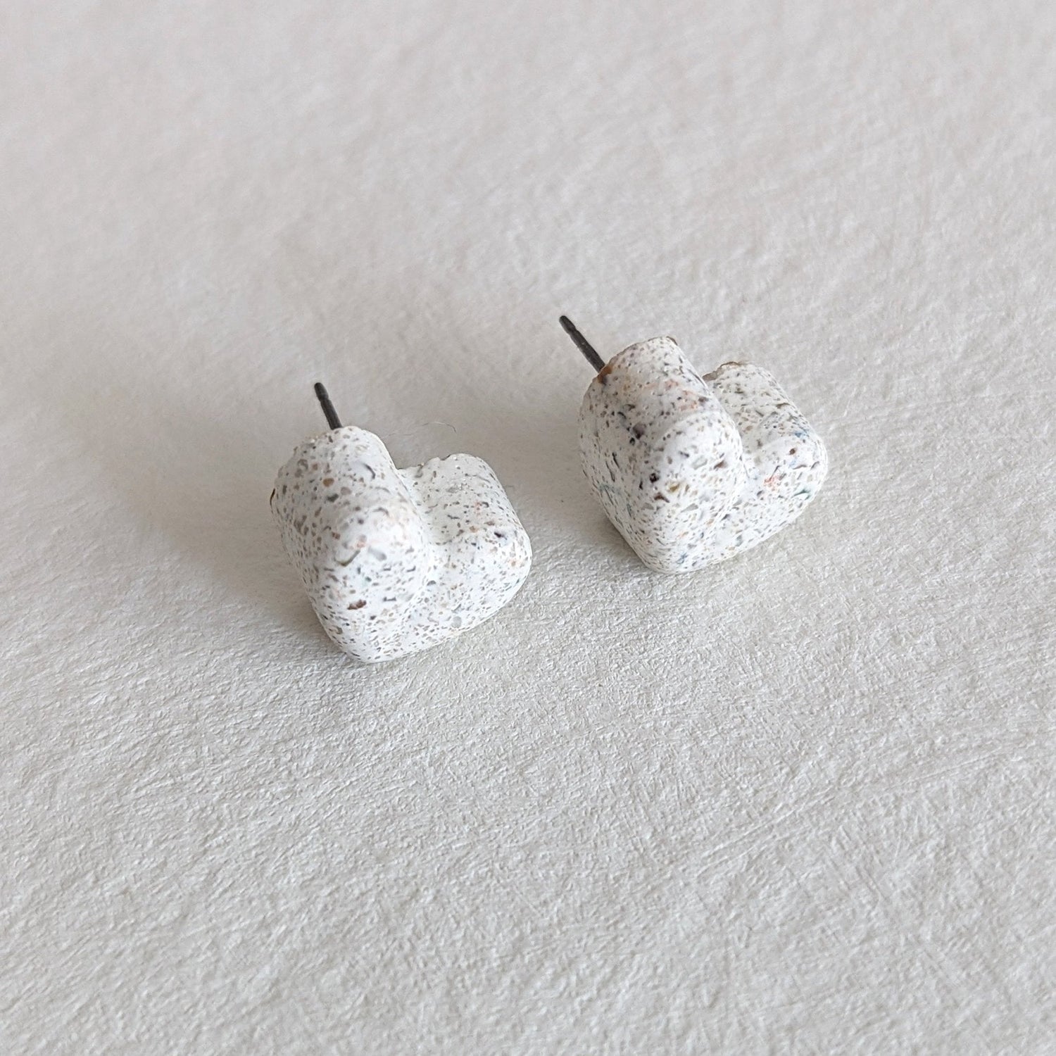 Say hello to our chunky heart earring studs, made from terrazzo concrete and available in a variety of rad colors.