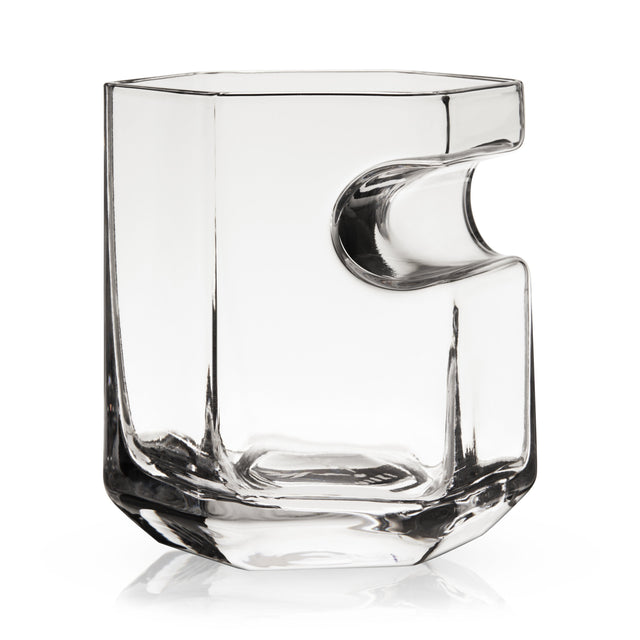 The Crystal Cigar Glass by Viski combines a classic rocks glass profile with a hexagonal base and a built-in cigar rest, creating a unique connoisseur's tumbler. Strikingly clear crystal perfectly shows off the liquor within, while a sturdy angled base provides a satisfyingly hefty foundation. The cigar rest can fit a range of ring gauge sizes, up to 54.