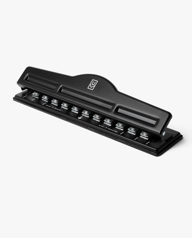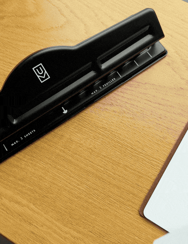 The Discbound Punch allows you to add your own pages and other inserts to your Ugmonk Discbound Journal. It punches up to 3 sheets of paper or 1 sheet of cardstock with clean, consistent holes that work with the universal discbound system (standard 1" spacing between the holes).