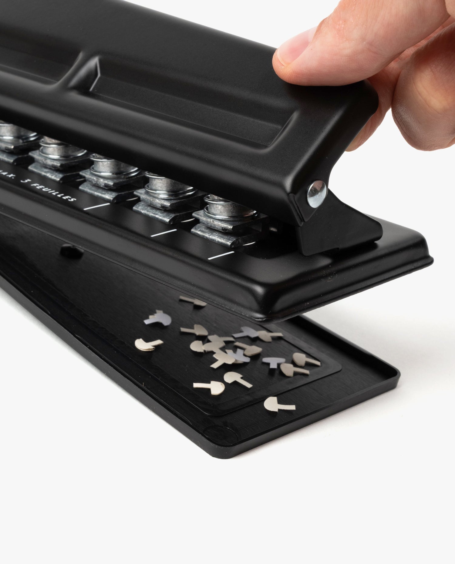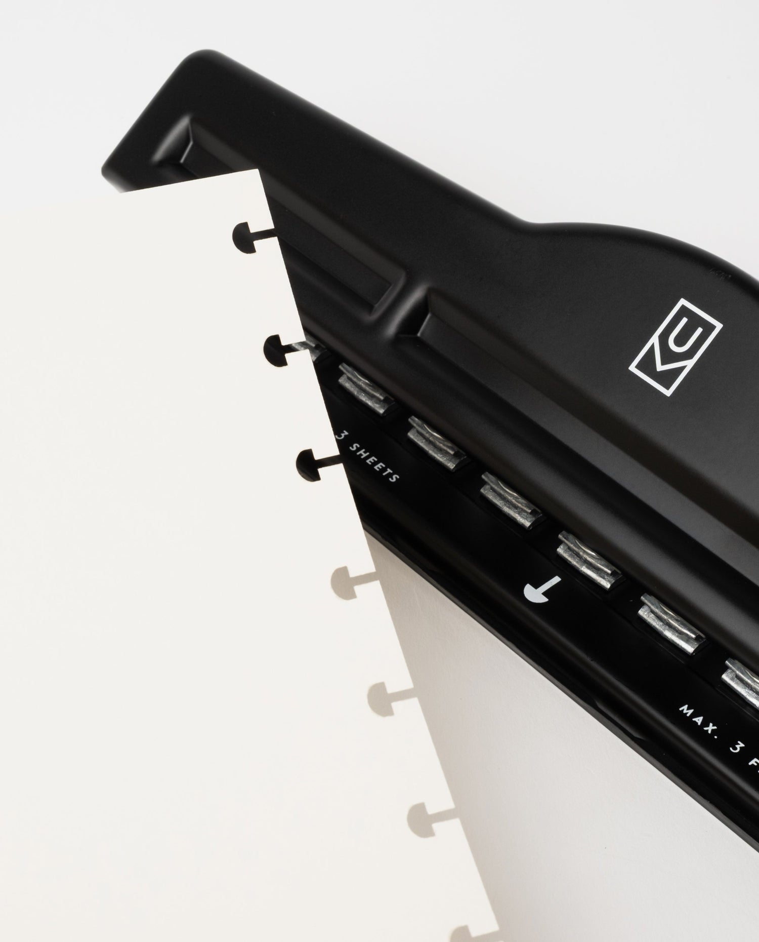 - Punches 3 sheets of paper or 1 sheet of cardstock