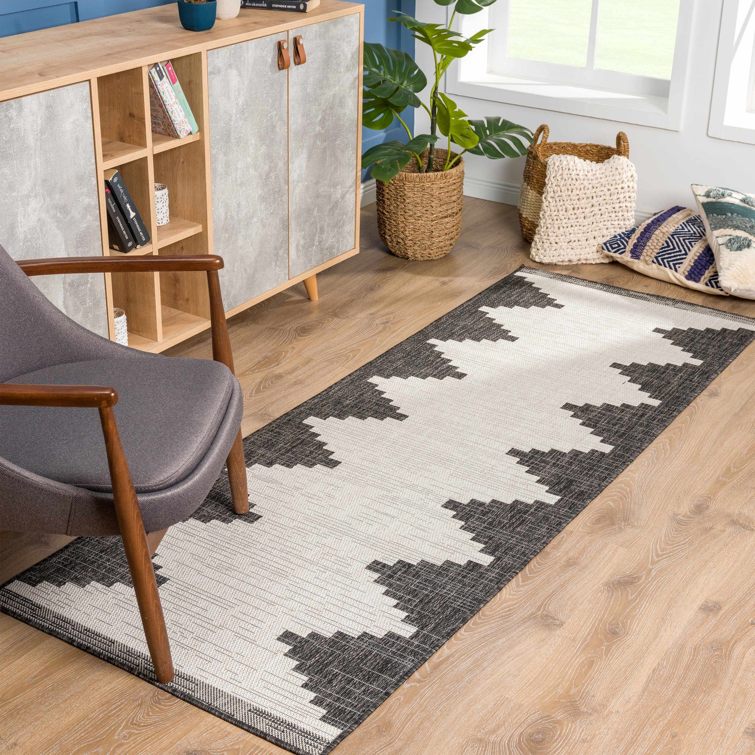 About: Looking for a stylish and durable area rug that can be used both indoors and outdoors? This beautiful outdoor rug features a modern Aztec design in black and off-white, making it the perfect addition to any space. Whether you use it in your living room or on your patio or porch, this rug is sure to make a statement. |