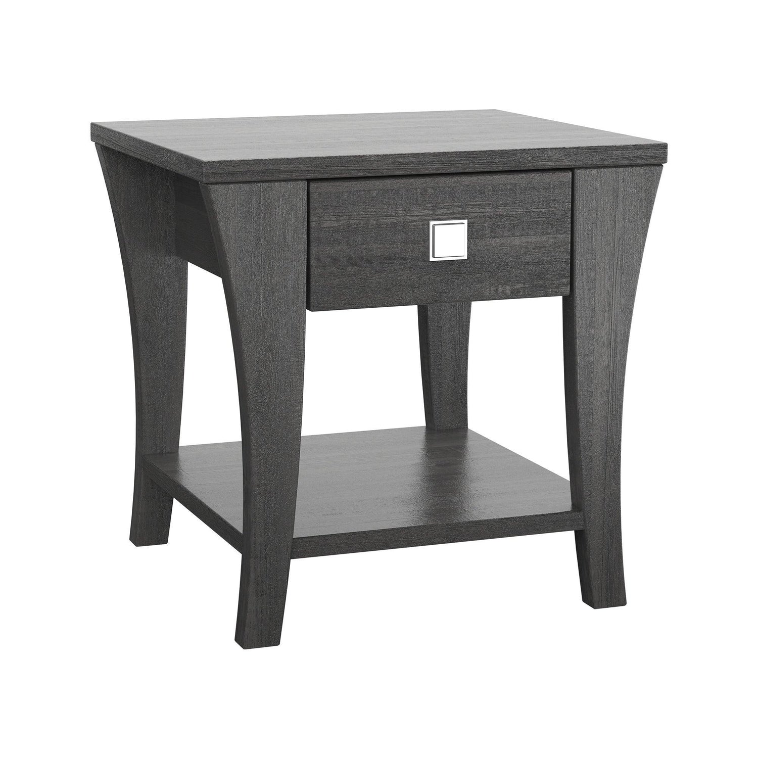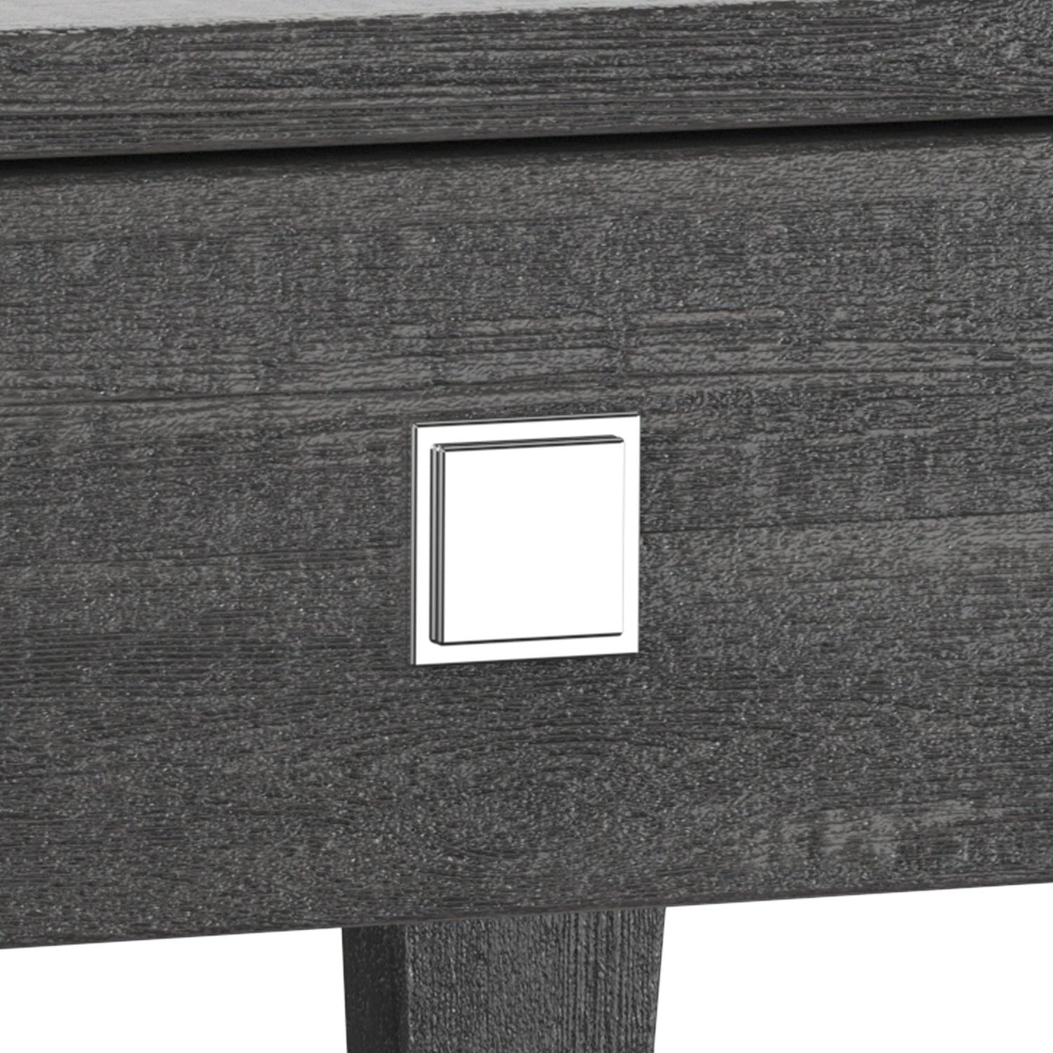 This table brings a visually pleasing touch of style and shape. A smooth gray finish matches well with silver drawer pulls and the swooping curled legs to give this set a contemporary feel. Storage drawers add a touch of utility to this piece.