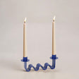 Wavy Electric Blue metal candle holder for two taper holders. Handcrafted in India, Fair Trade Certified.