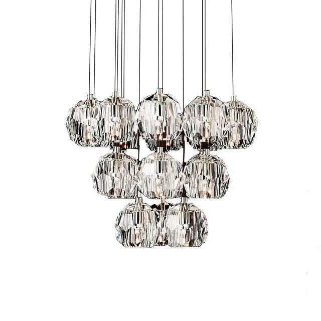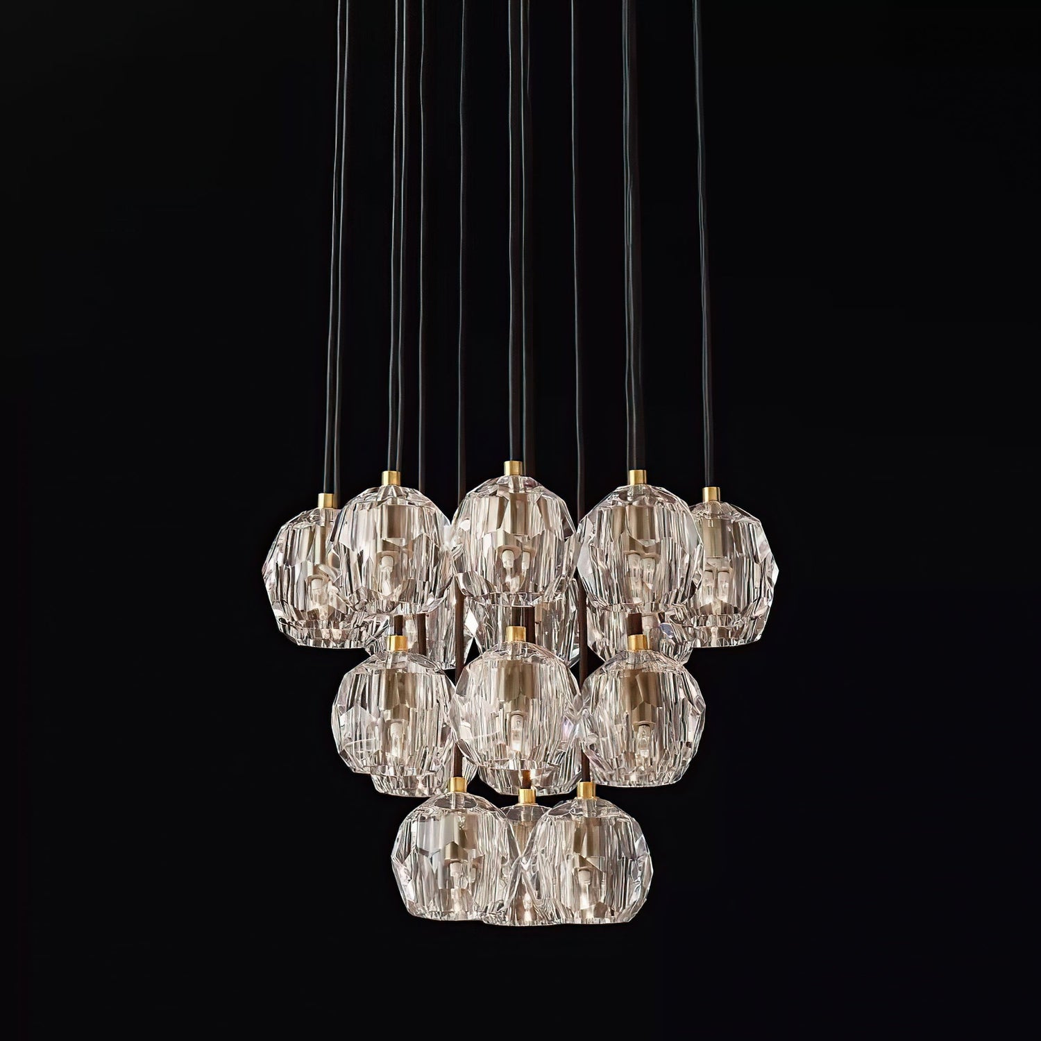Crafted of solid brass and crystal glass, the designer Kristal Crystal Round Cluster Chandelier 19″ is a testament to his passion for luxe materials and superior craftsmanship. Evoking the minimalist spirit of 1960s design, each finely faceted sphere is ground and polished by hand to reflect and refract the light.
