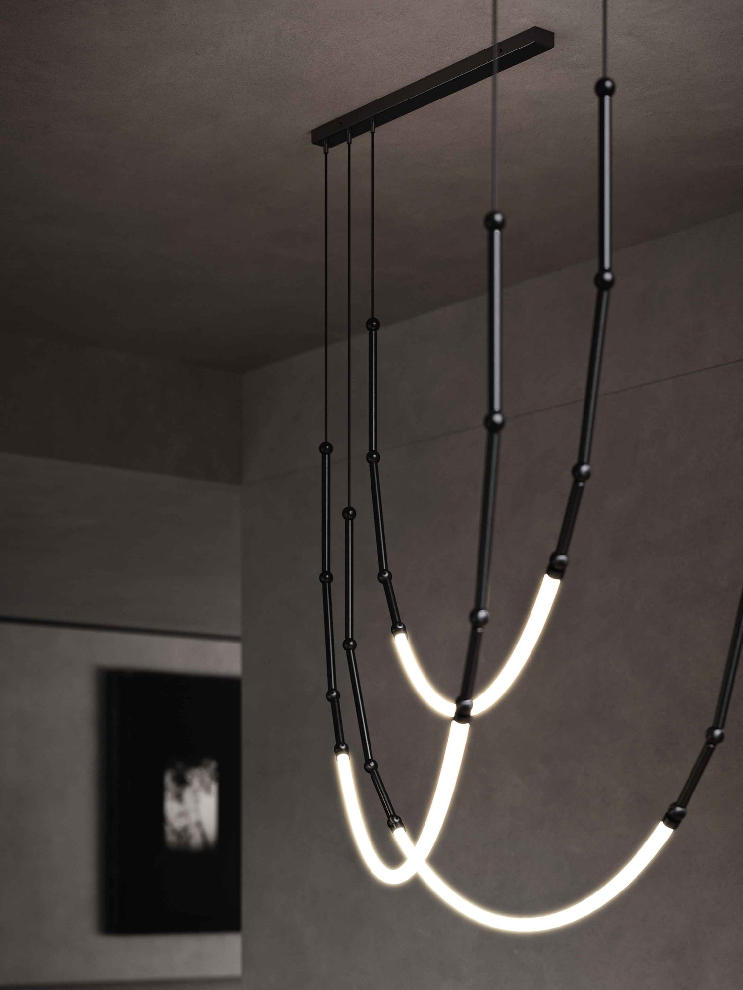 The Leda Chandelier is an exquisite LED light that merges the poetic story of Leda and the Swan with advanced technology. It offers versatile arrangements for both indoor and outdoor spaces. With a flexible diffuser and customizable layout, this chandelier adds a touch of femininity to any setting.