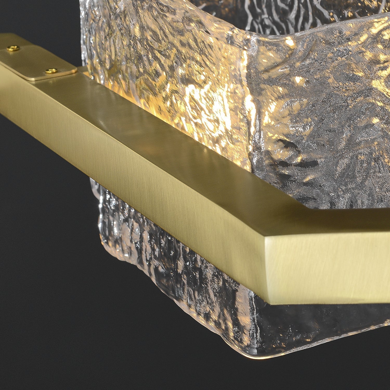 long water ripple glass chandelier light brings a chic, postmodern style to your breakfast nook, bedroom, or kitchen. It can bring you different visual experience through the special light reflected. The finish is made of high-quality brass and creative rectangular corrugated transparent geometric glass lampshade, creating a luxurious and fashionable feeling. Inside there are 8 bulbs under the clear water ripple glass lampshade that cast a soft glow throughout your space. In addition, it is suspended on an adjustable boom, and you can adjust the appropriate height as needed.