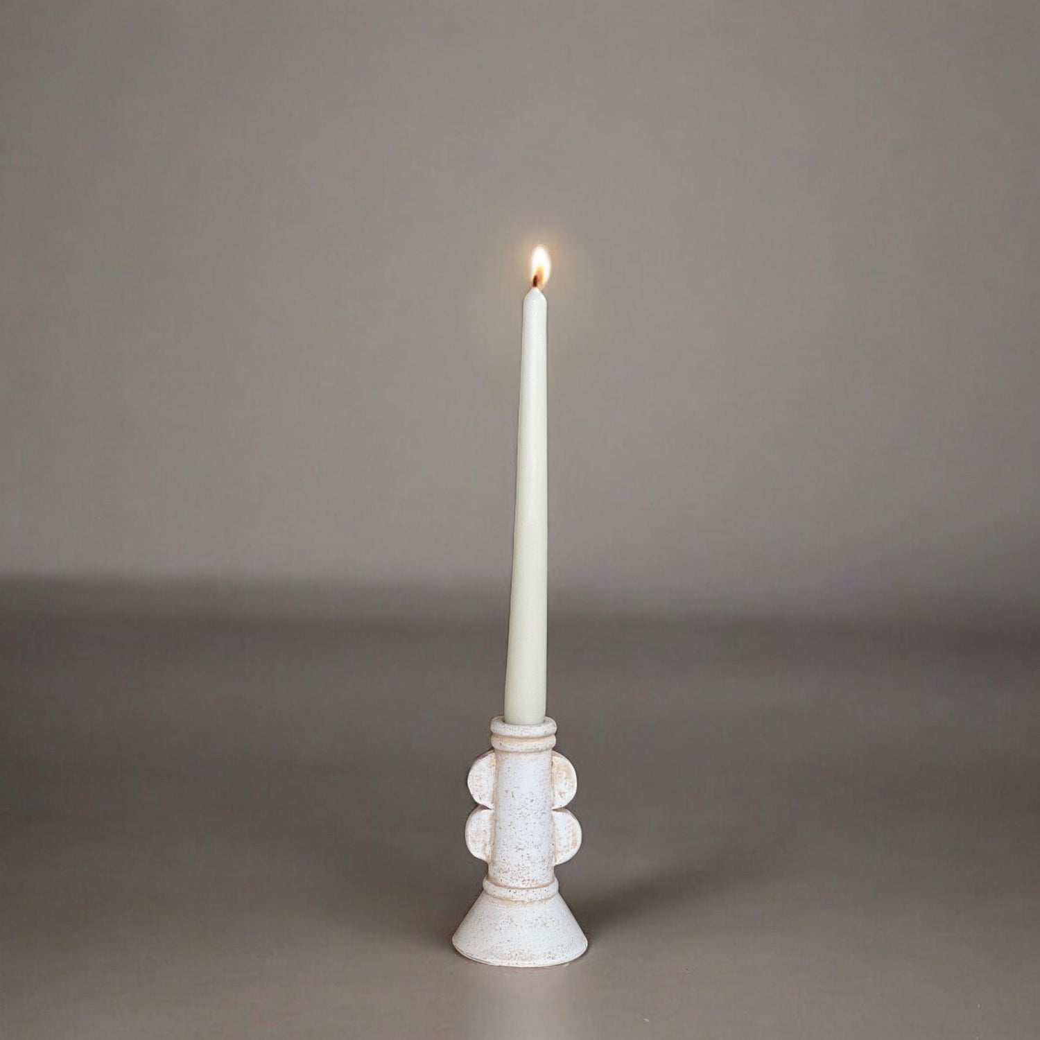 Terracotta taper holder short. Handcrafted by artisans in Sabana Grande, Honduras.