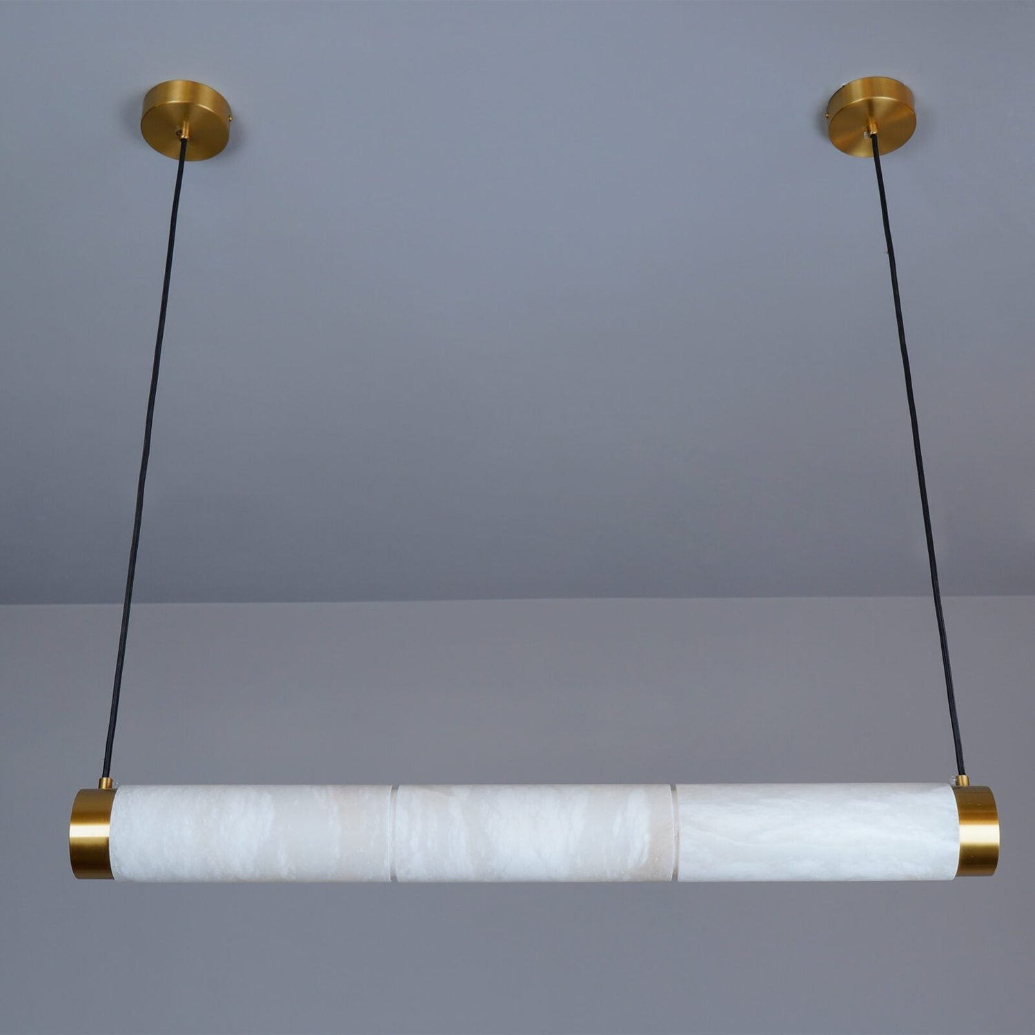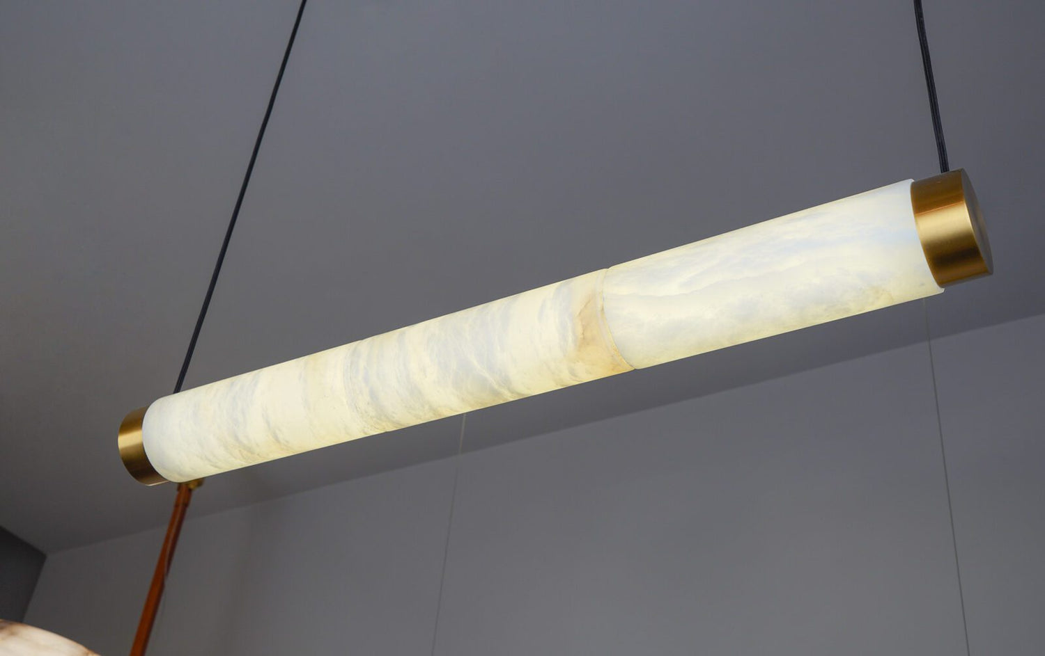 A chandelier made entirely of natural textured marble. Thanks to the use of marble, the lamp with a simple shape acquires an elegant personality. Each product is unique and has a variety of interior and over-the-counter applications.