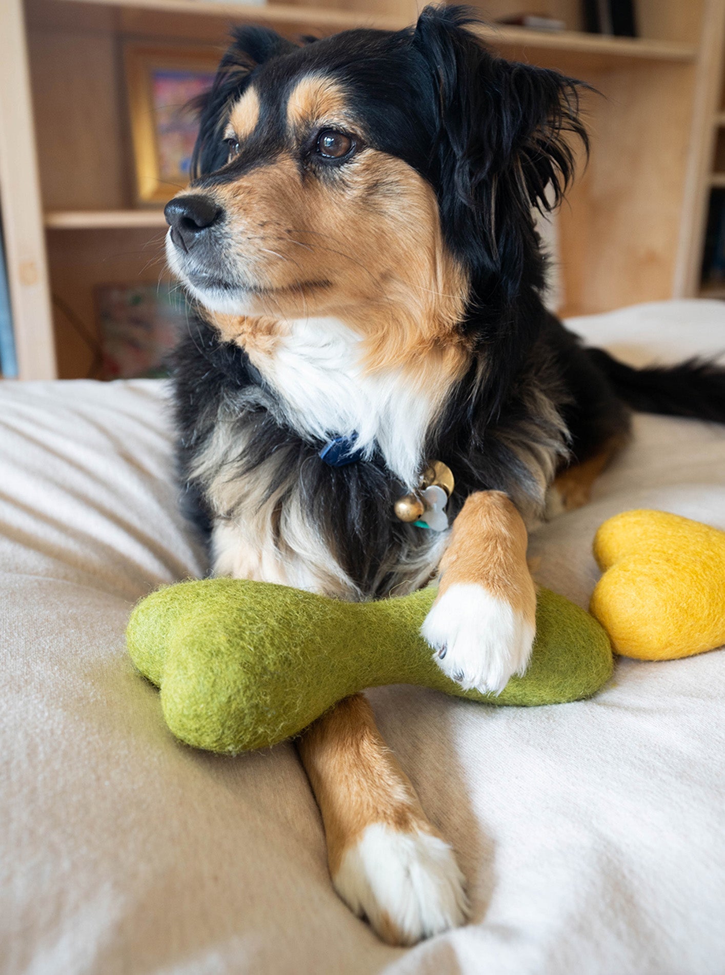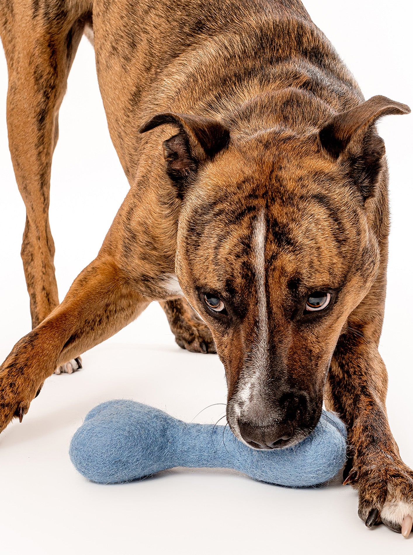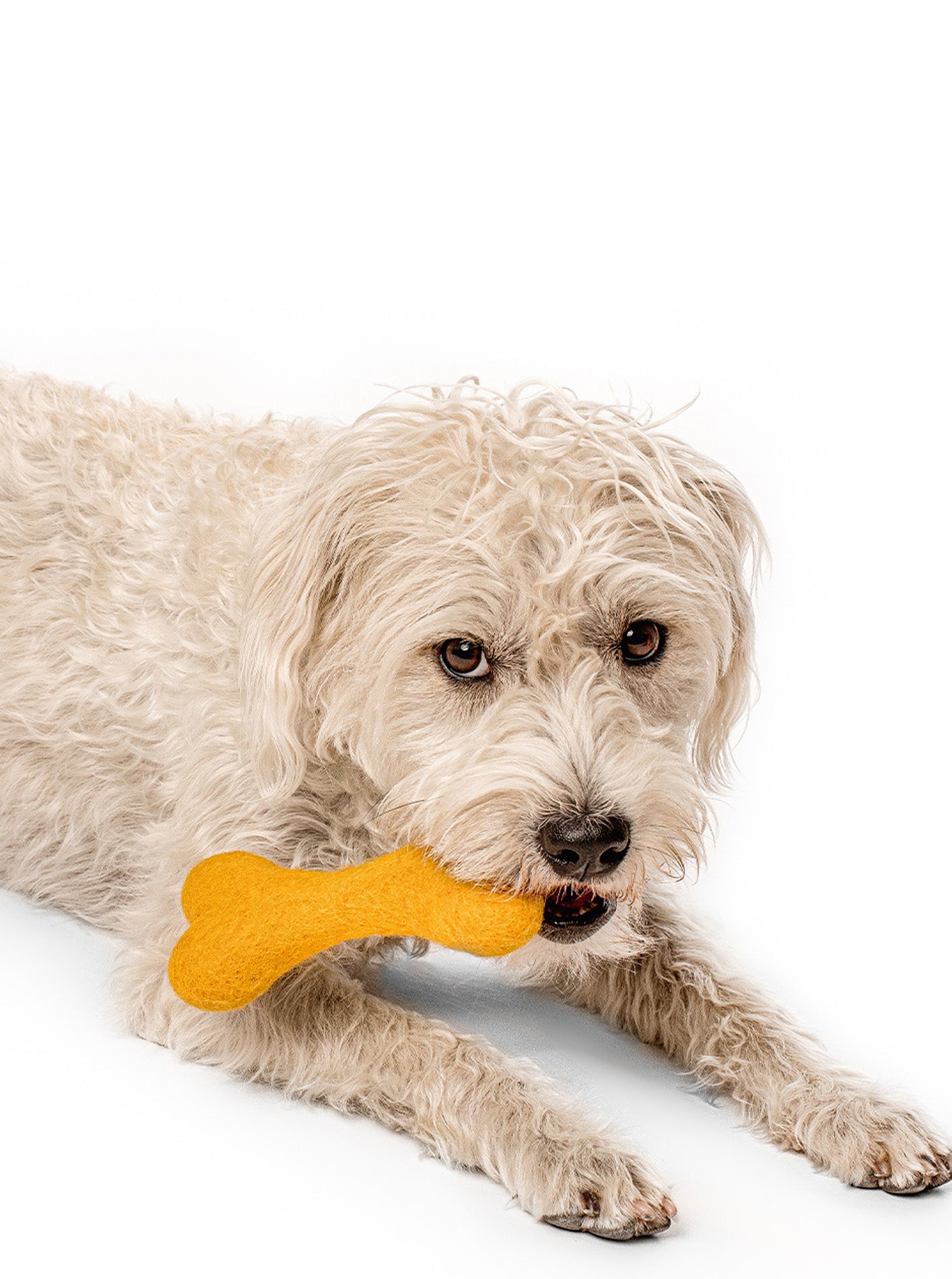 Give a dog a bone. It’s a phrase as old as time. And now it’s time for an update. With our new MB WOOLBONE - with its sleek modern design - you can now give your dog a stylish, eco-friendly and 100% wool bone! Even Ernie, our resident wool toy connoisseur, agrees that our new MB WOOLBONE will quickly become your beast’s favorite fetch, catch and cuddle toy.