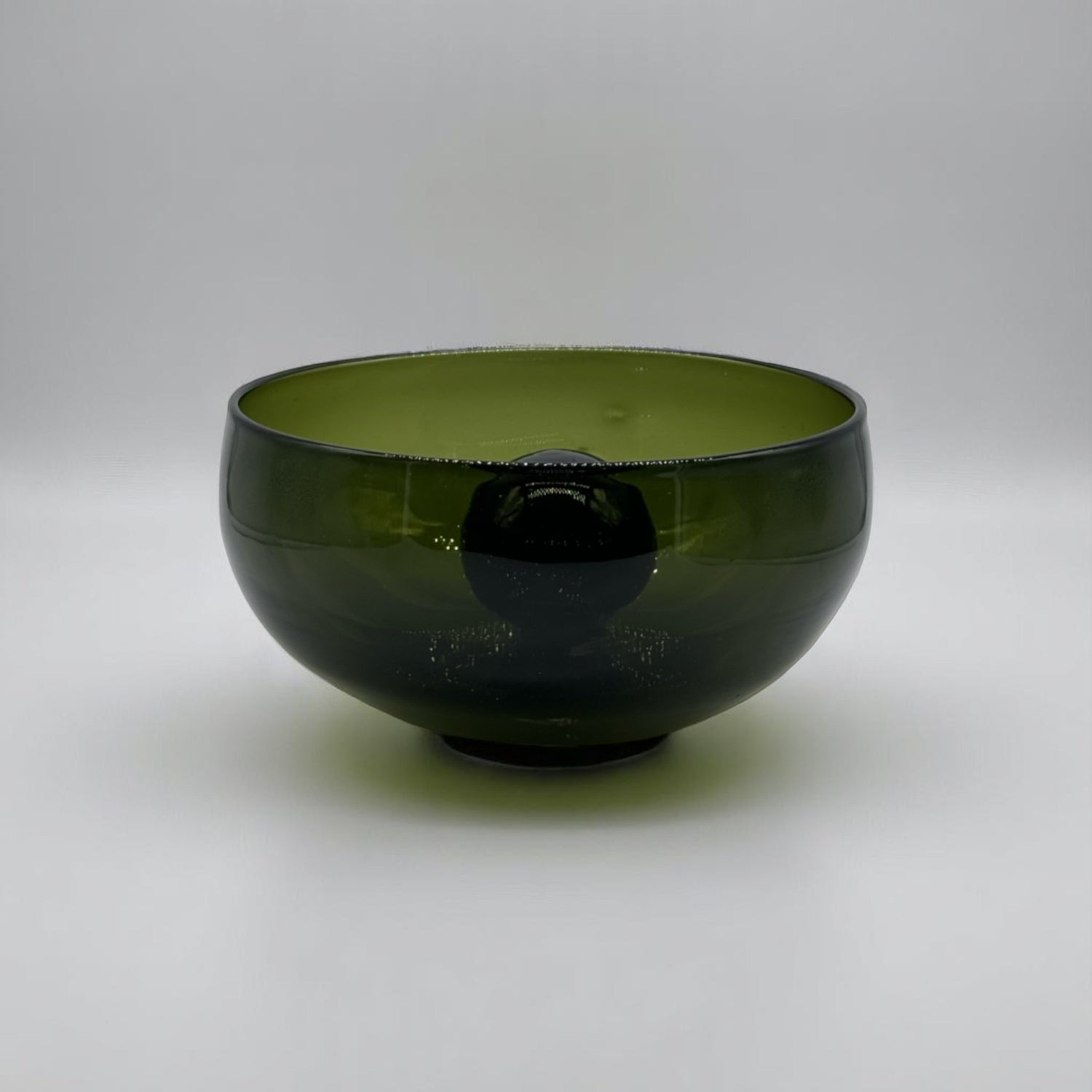 The Mitla bowl is made using recycled glass by artisans in Guadalajara, Mexico. Forest Green Colors.