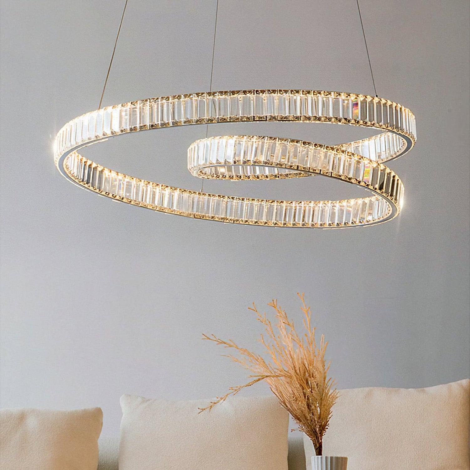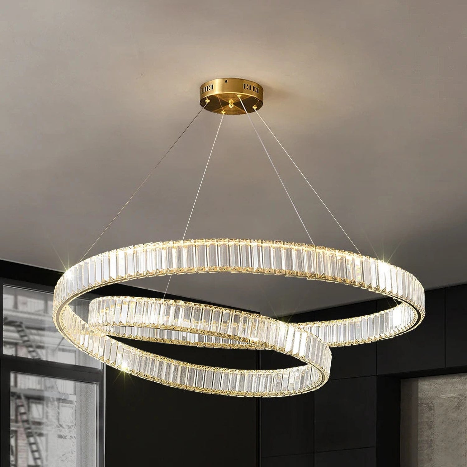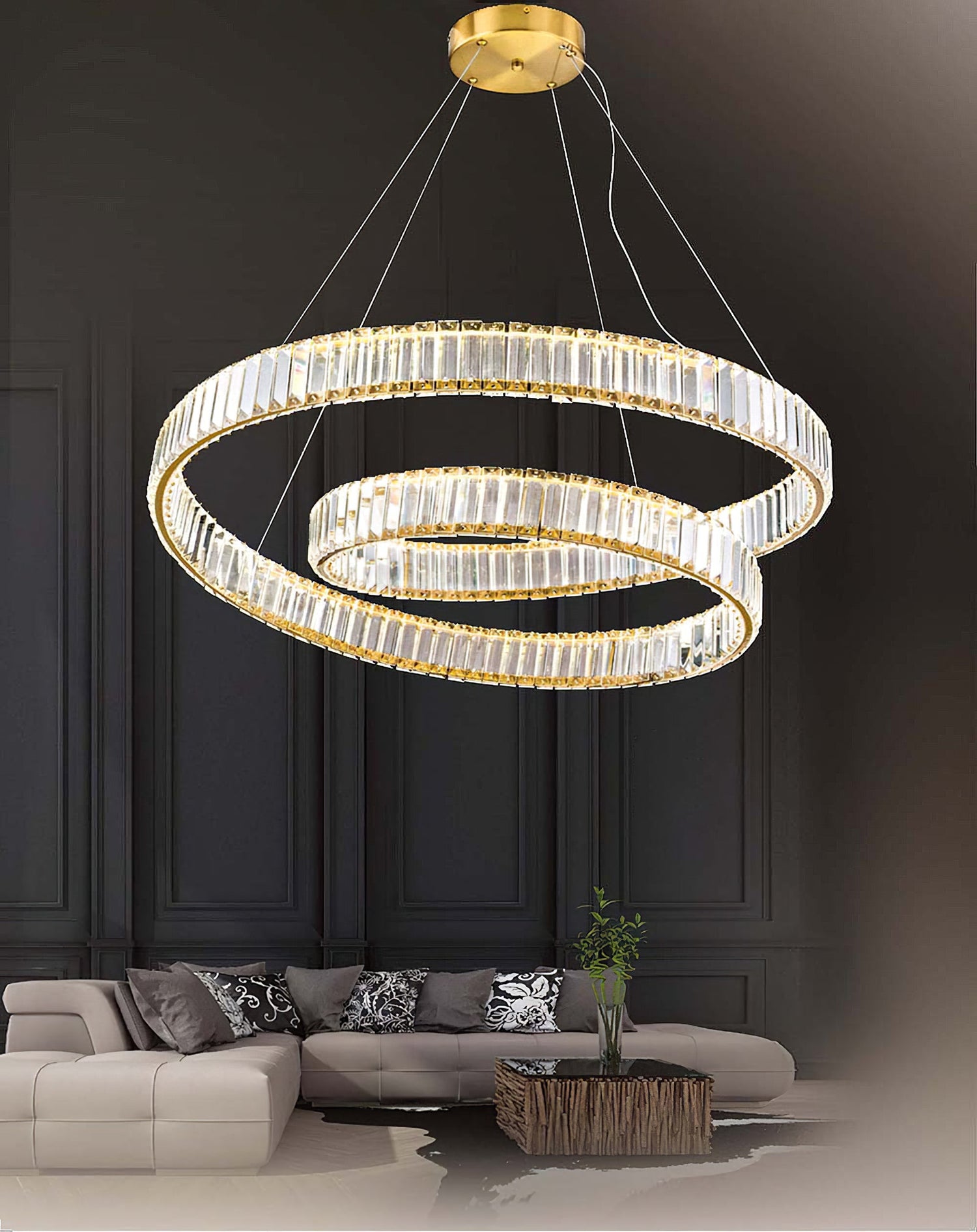 Our Modern LED Crystal Chandeliers feature a captivating double-layer design, creating a stunning centerpiece in any room. The intricate crystal accents reflect light beautifully, adding an elegant touch to your space. Crafted from high-quality K9 crystals and durable stainless steel, our chandeliers exude luxury and sophistication. The sturdy construction ensures long-lasting illumination and adds a touch of modern flair to your home decor.