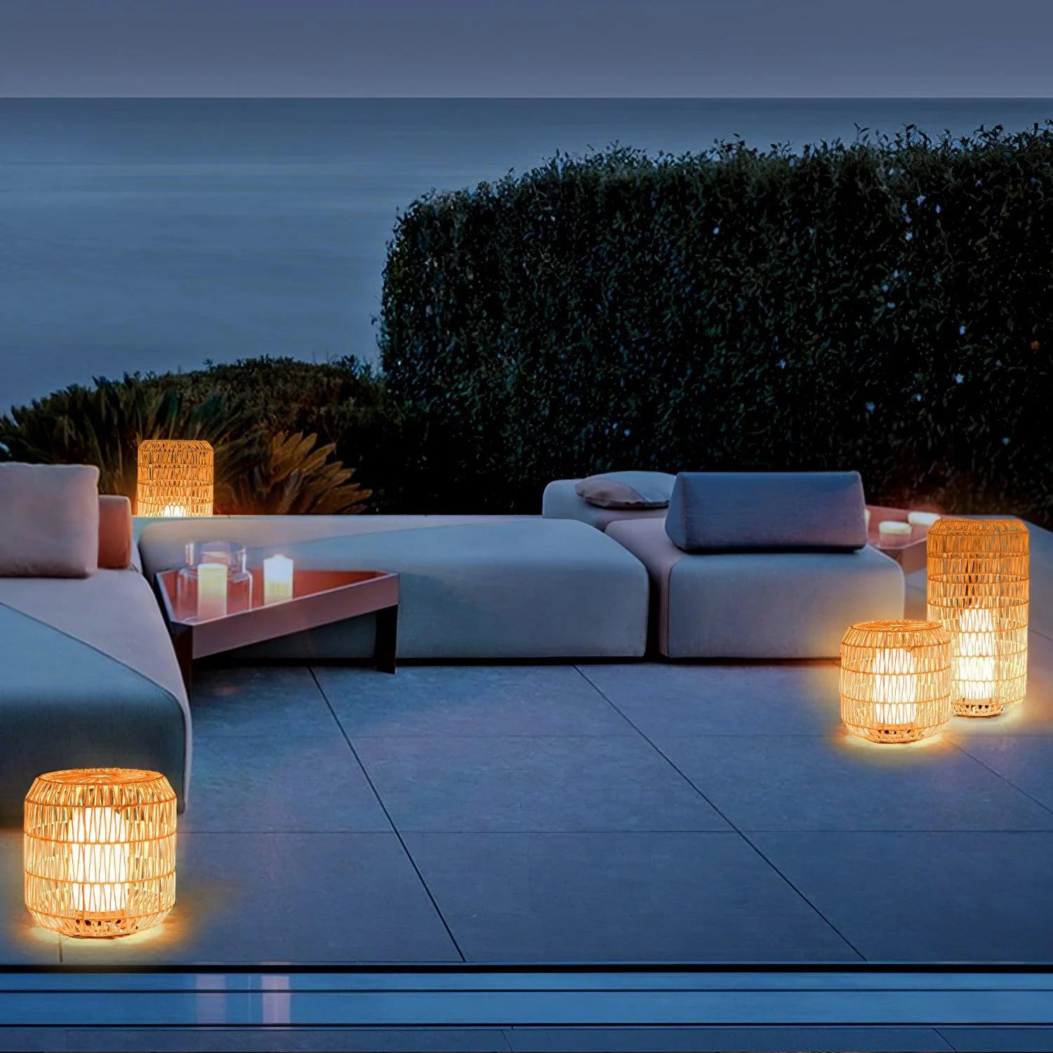 Experience the perfect blend of traditional craftsmanship and modern style with the Woven Rattan Outdoor Lamp. Meticulously crafted with high-quality rattan, these lamps boast a complex yet lightweight design. It emits a soft, ambient glow, highlighting the rattan details for a warm appeal. It adds a touch of elegance to any room, making it a perfect fit for both modern and rustic decor.