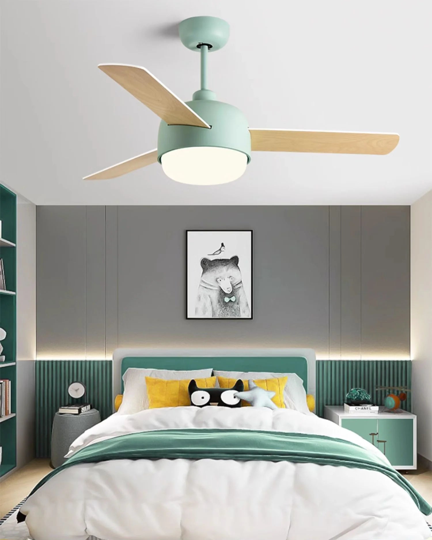 Add a touch of modern elegance to your casual living and dining spaces with the Nordic Macaron Dome Ceiling Fan Light. The sleek design, with clean lines and a green finish, adds a fresh and vibrant touch to any room. The striking wooden fan blades add striking contrast, while the close-to-ceiling mounting allows for optimal performance in low-ceiling rooms without compromising style or space. Experience the perfect blend of functionality and style with this compact yet stylish ceiling fan.