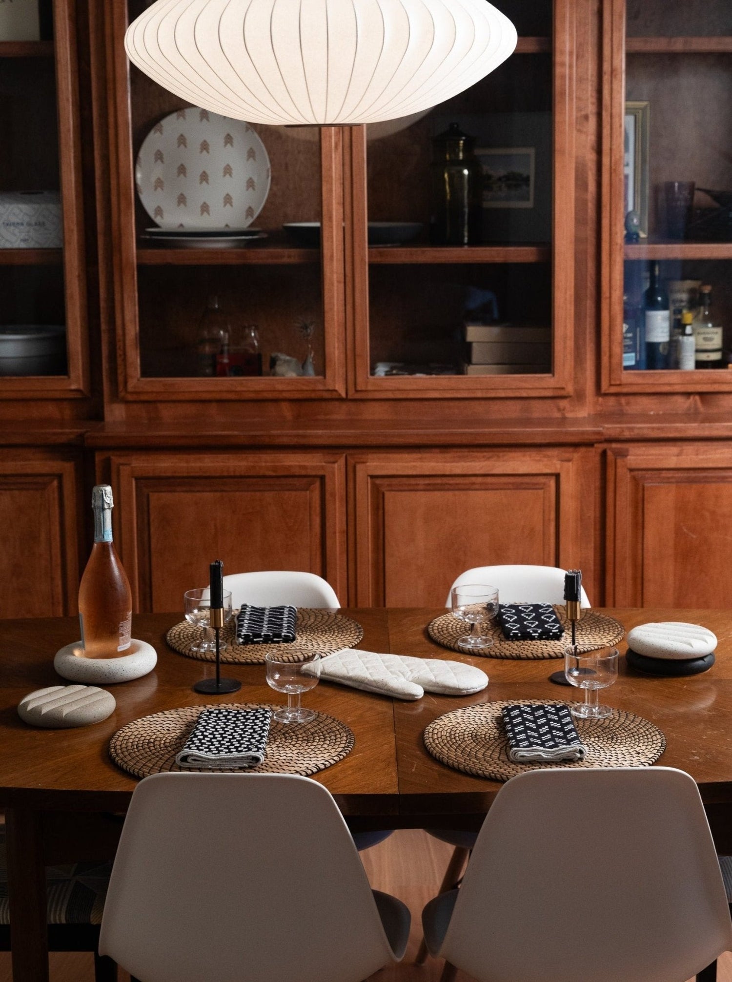 Inspired by that classic, quilted oven mitt that we've all used as a makeshift trivet. Safe for use with any hot pots or serving dishes.