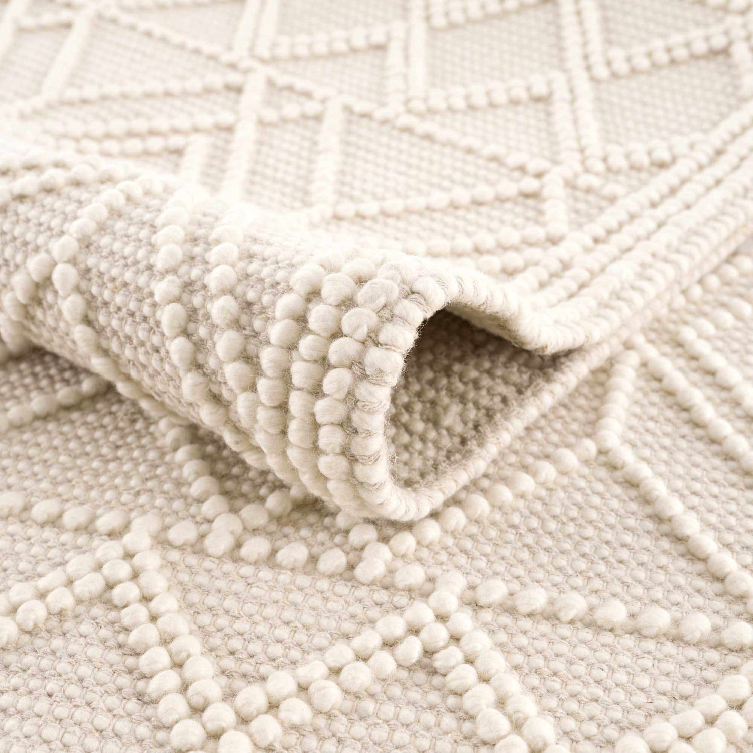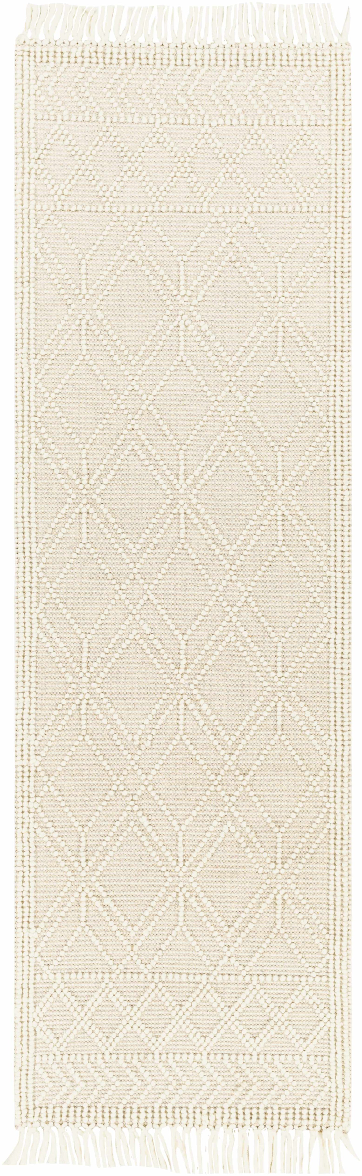 About: This hand-woven wool and cotton rug features a sophisticated trellis pattern, offering a blend of traditional charm and contemporary elegance. The high-low texture of the rug adds a unique tactile element, enhancing its visual appeal and comfort underfoot. Adorned with tasteful tassels, this rug brings a classic yet modern touch to any room. Its combination of wool and cotton materials ensures durability while providing a soft, inviting surface, making it a luxurious and practical choice for any living space. |