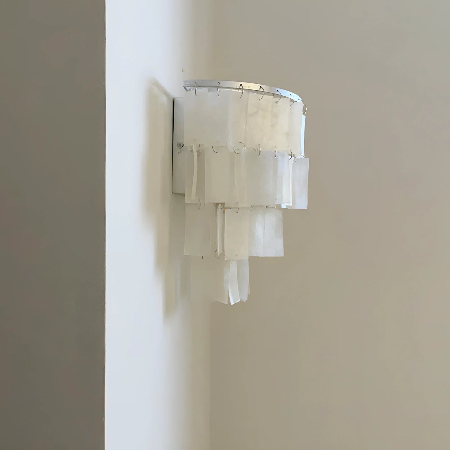 Skye Tiered Wall Lamp, Each shell is translucent in nature, allowing the light to radiate through for an intriguing effect. Bring a warm glow to your space and bring artistic serenity.