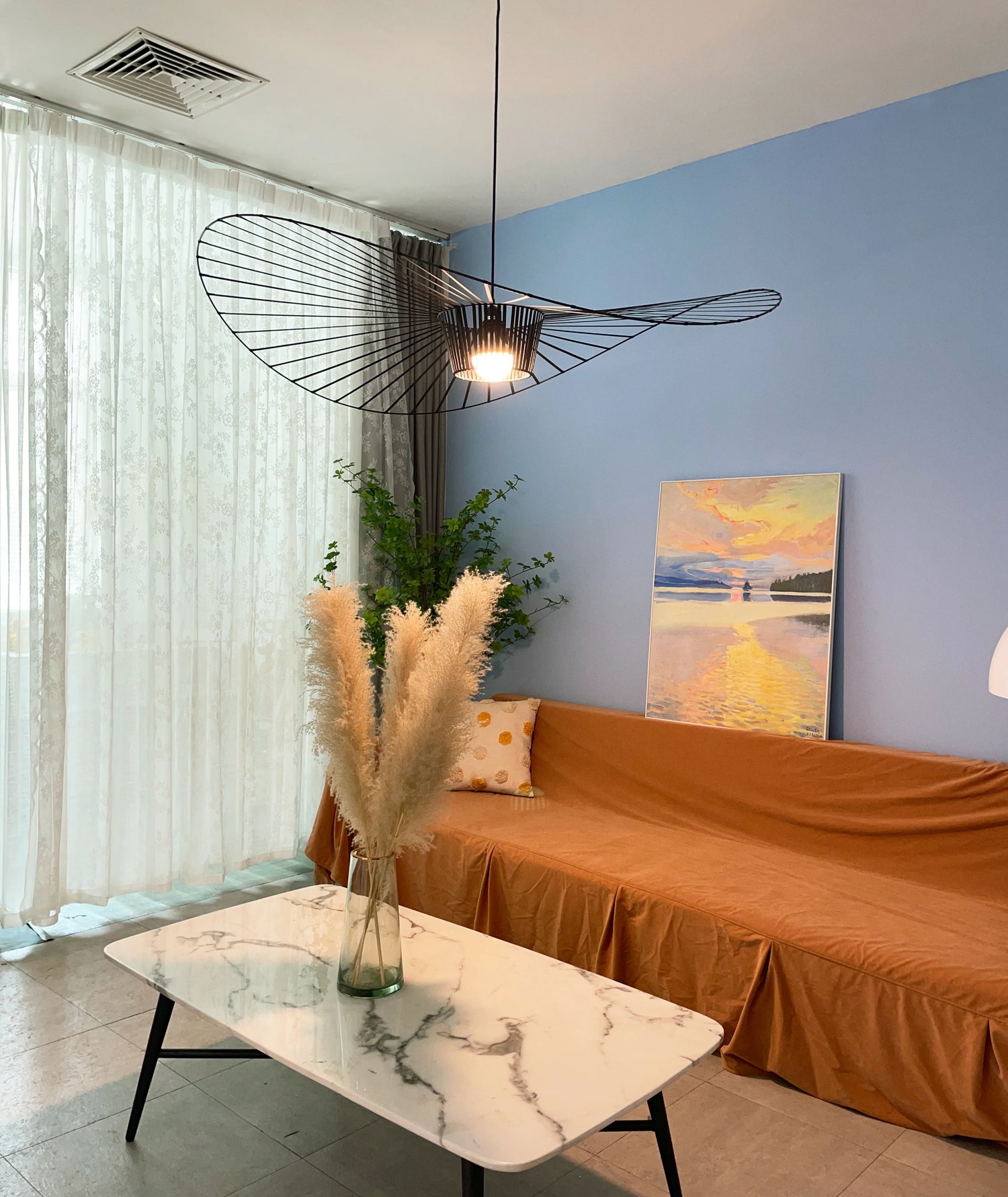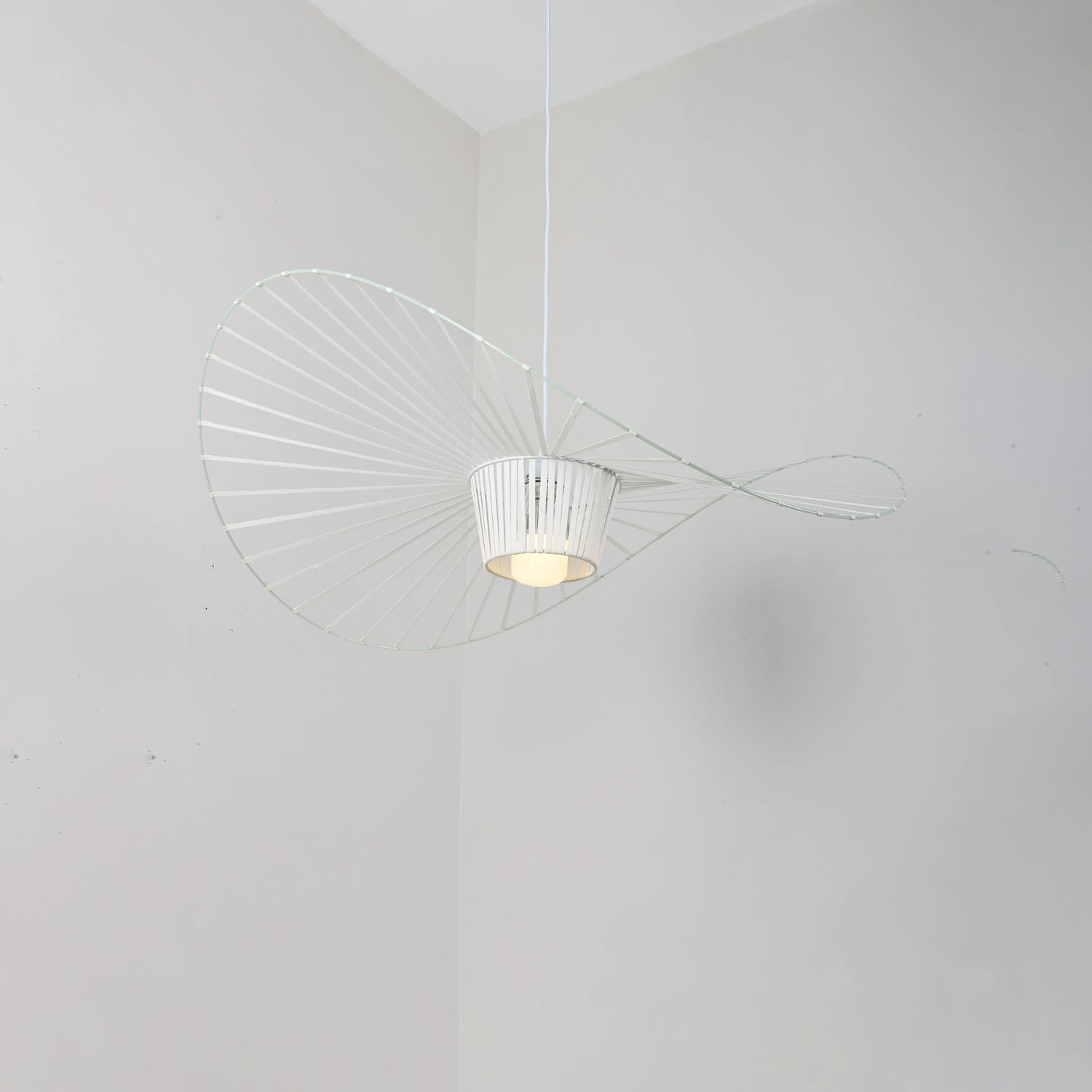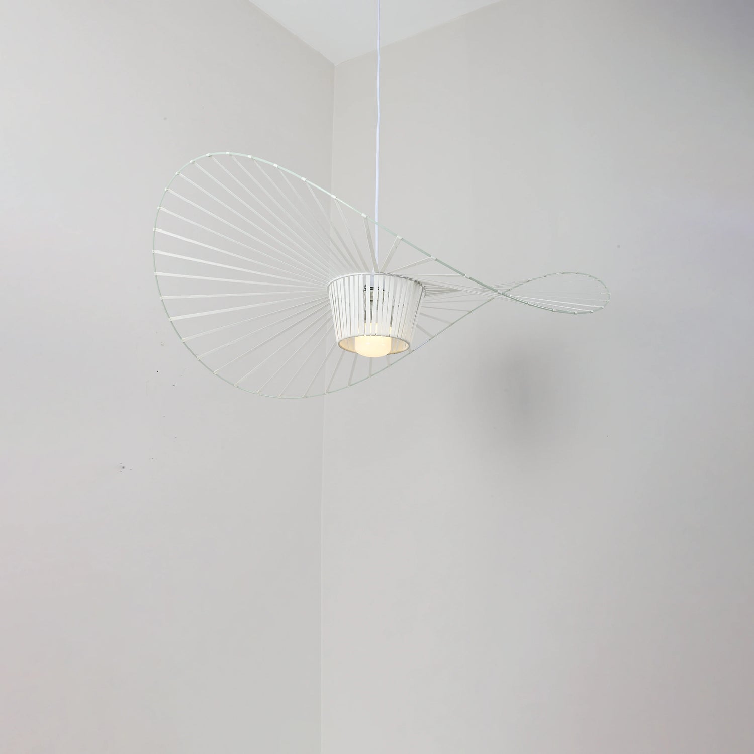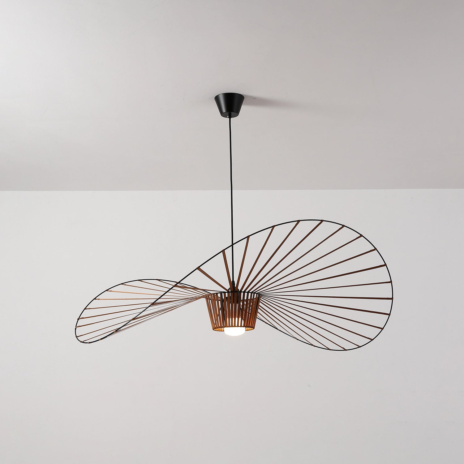 Experience a captivating play of light and shadow with the Vertigo Fiberglass Pendant Lamp. When illuminated, the delicately woven ribbons create a beautiful and diffused glow, casting intricate patterns on the surrounding surfaces. Whether suspended above a dining table, in a living room, or even in a commercial space, the Straw Hat pendant light transforms the ambiance, creating a warm and enchanting atmosphere that is both soothing and inviting.