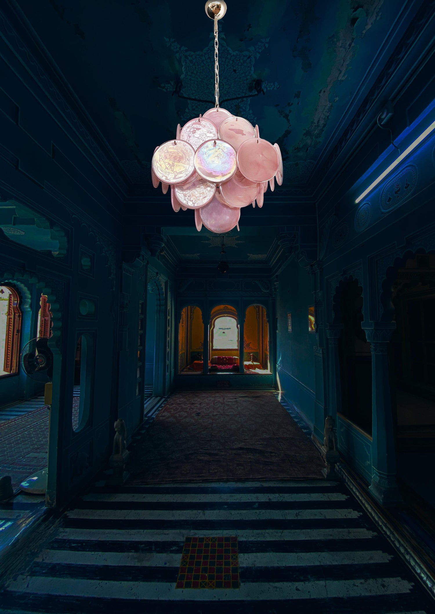 Add a touch of timeless elegance to your home with our Vintage Murano Pink Glass Chandelier. Crafted in the exquisite Murano style, this chandelier showcases pink glass that reflect a dazzling array of colors, creating a truly mesmerizing centerpiece. Elevate your space with this stunning masterpiece.
